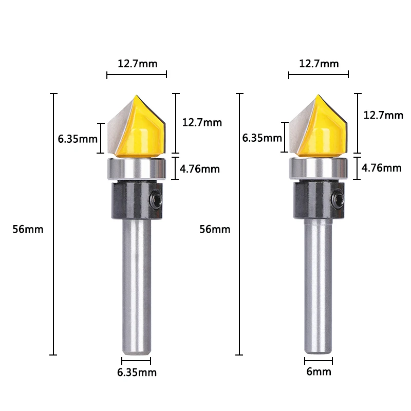Фрезерный станок для дерева 6 мм 1/4 ''хвостовик V паз бит с подшипником направляемый для деревообработки фрезерные инструменты Карбид фрезы