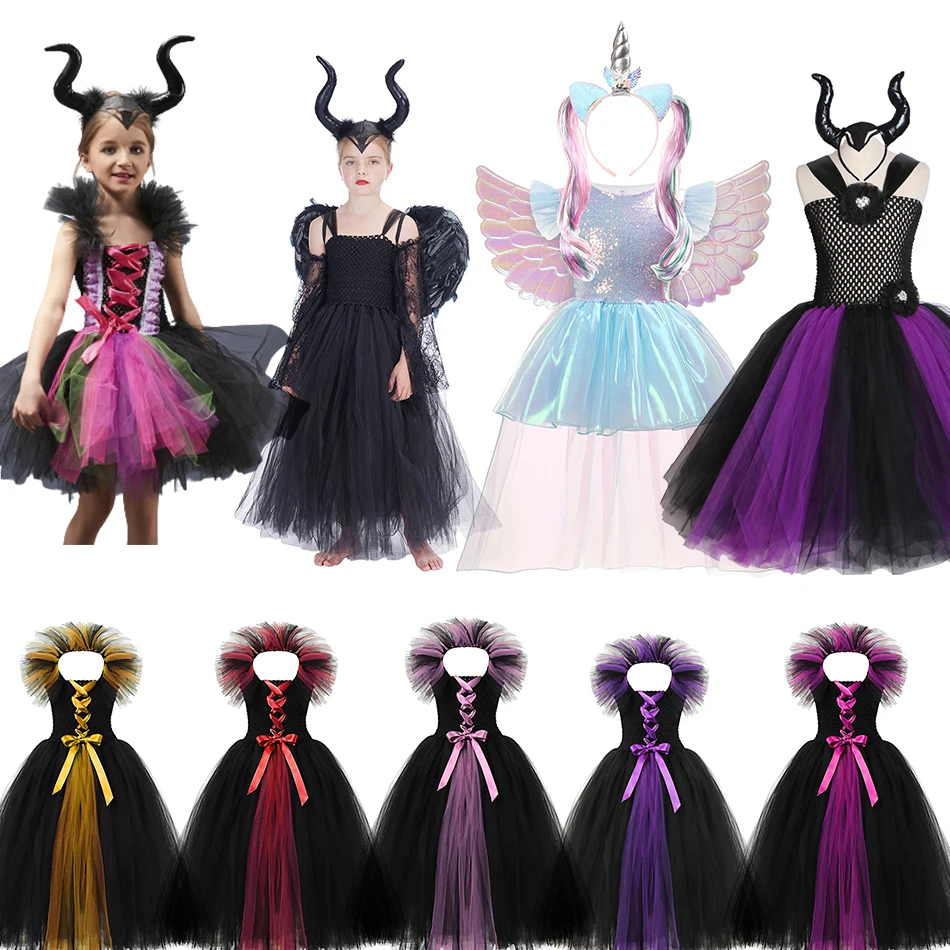 Детское платье-пачка с черным дьяволом для косплея на Хэллоуин