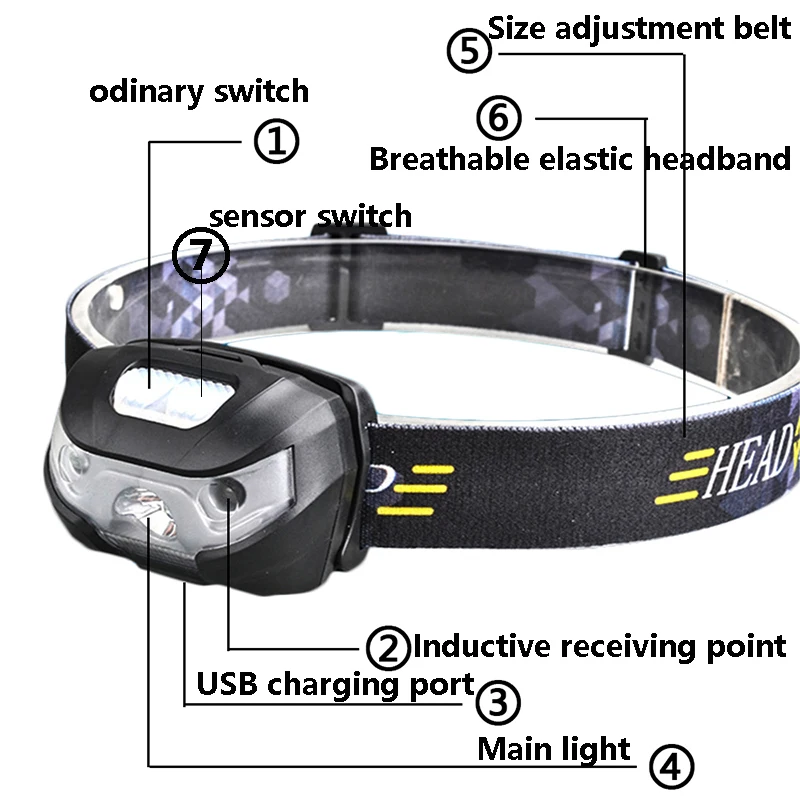 1.Индукционная фара, когда ваша рука находится рядом с фаройВ пределах 15 см, Фара включится, когда вы оставите налобный фонарь пальцем, он будет выключен.