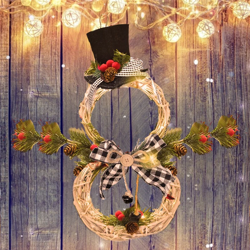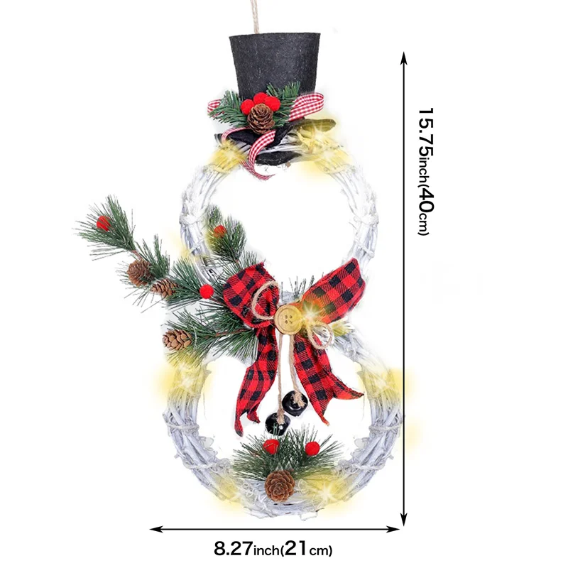 Рождественский венок светодиодный ные огни, снеговик, ротанговый декор, дверные подвесные 16x8 дюймов, домашние рождественские украшения 2021, гирлянда, украшения, Рождество