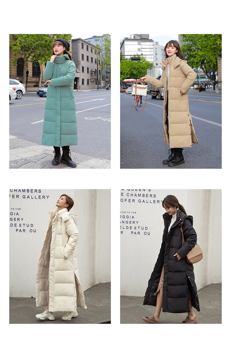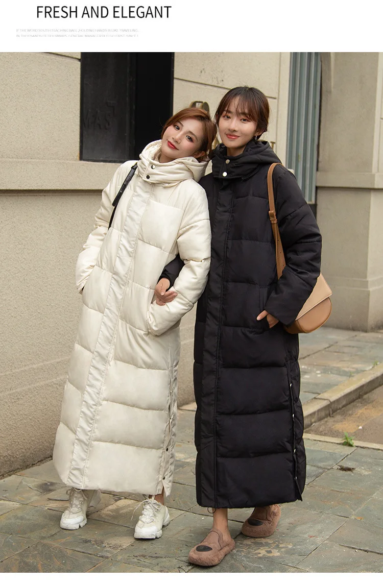 Уличная мода 2021, женская зимняя одежда, длинный пуховик с подклад...