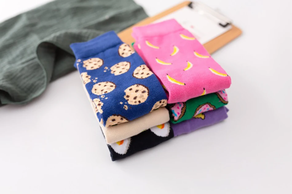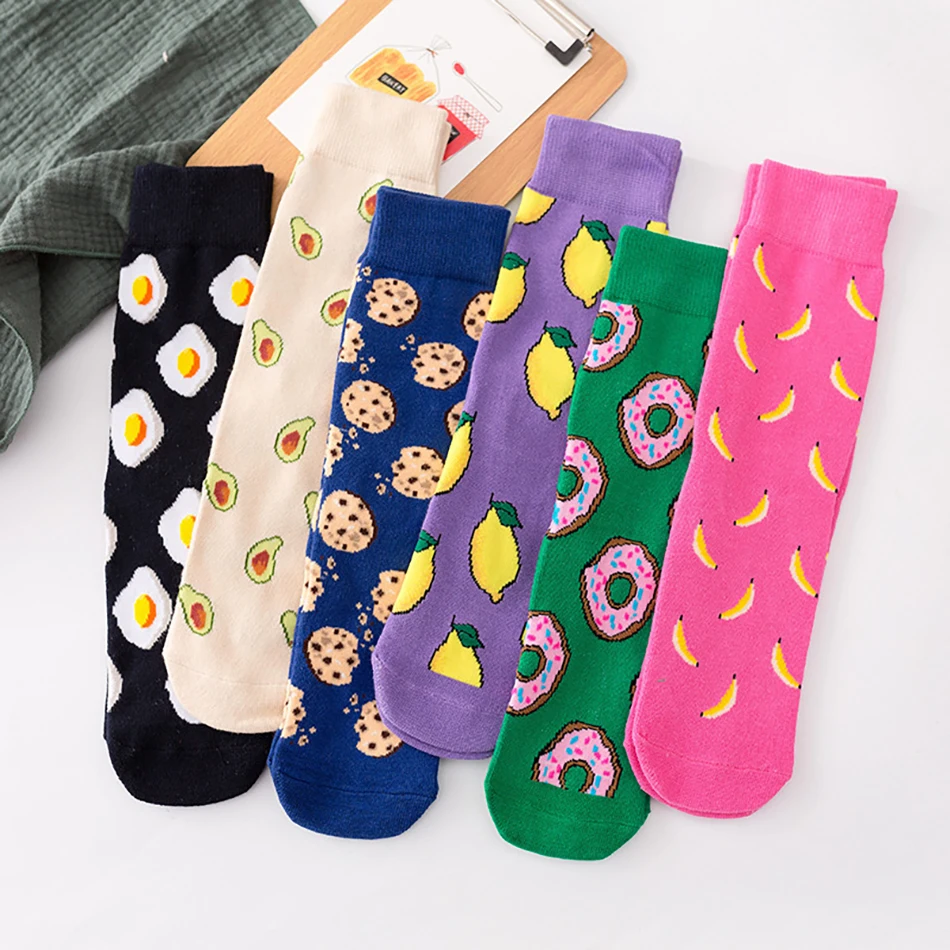Цветные яркие женские носки женские хлопковые носки Фрукты Банан авокадо лимон яйцо печенье пончики еда счастливого цвета носки Харадзюку