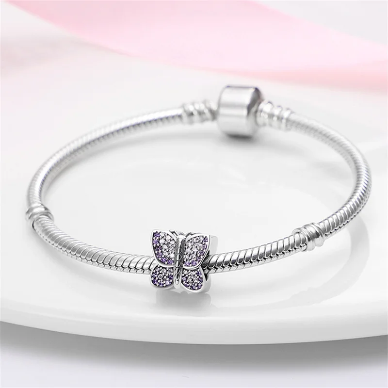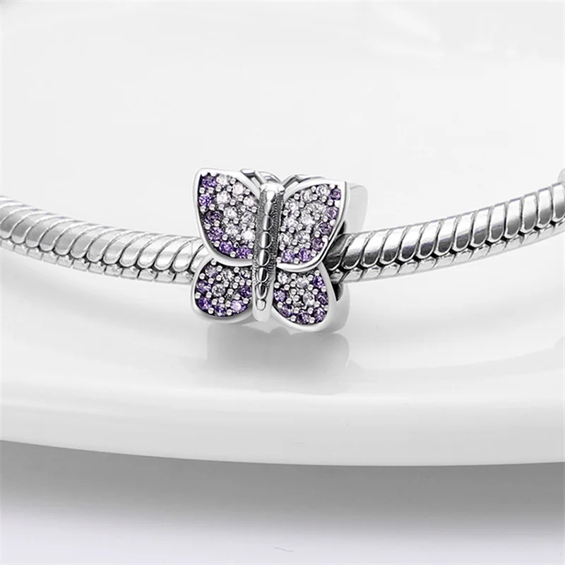 2021 новые серебряные циркониевые бусины-талисманы в форме бабочки plata de ley подходят для оригинального браслета Пандоры ожерелье женское ювелирное изделие сделай сам подарок