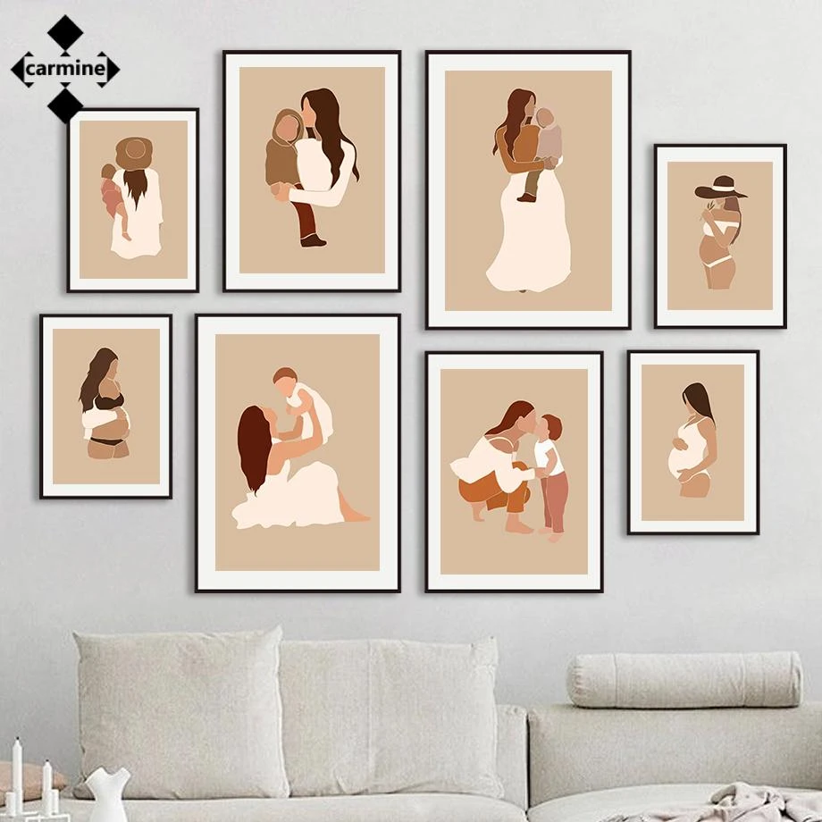 Декор детской комнаты, Настенная картина для мамы и ребенка, Картина на холсте, скандинавские Мультяшные плакаты и принты, современный стиль, плакат, декор для спальни