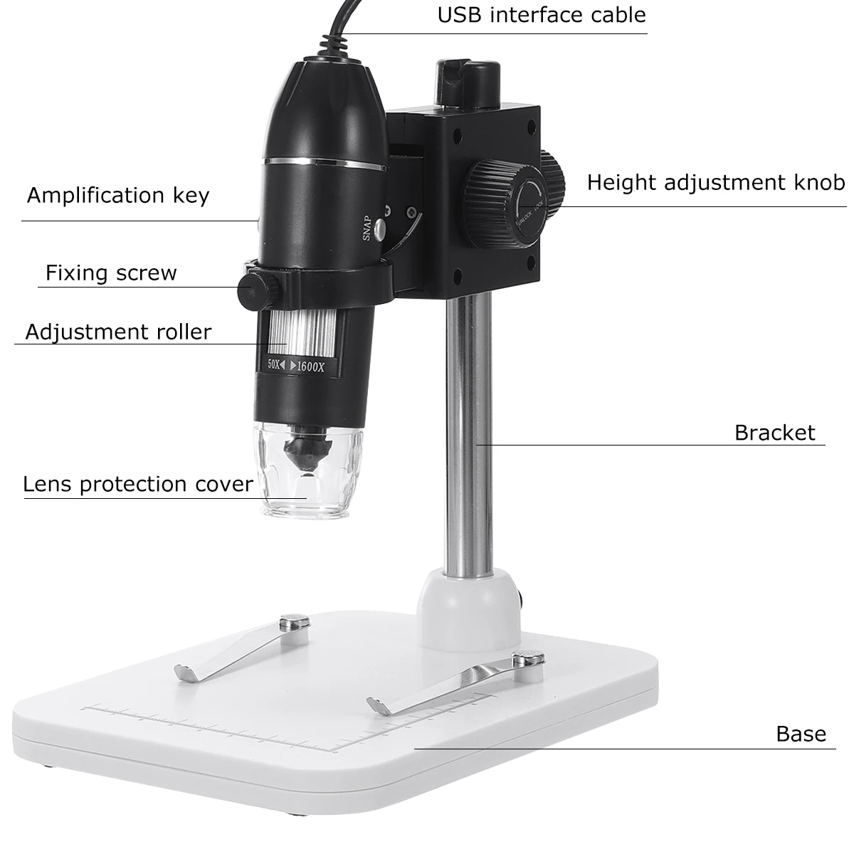 Цифровой USB-микроскоп, профессиональный регулируемый, с увеличением 1600x8 светодиодов, с подъемной подставкой