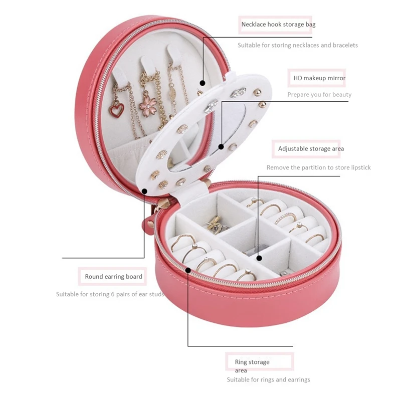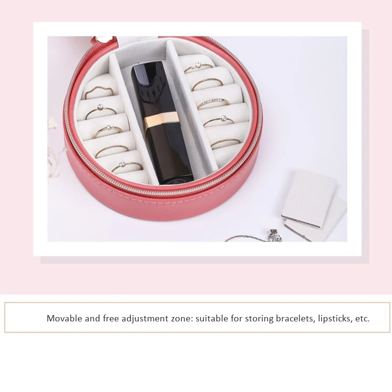 Круглая портативная шкатулка для ювелирных изделий из искусственной кожи, милая маленькая свежая шкатулка для хранения колец и ожерелий
