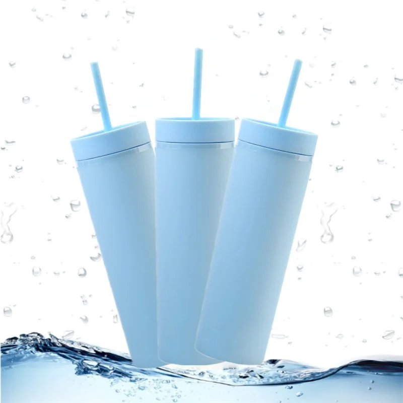 Многоразовая матовая соломенная чашка с крышкой, двухслойная чашка для воды, пластиковая бутылка для холодной воды сделай сам, кружка для кофе, уличный подарок для плавания Вечерние