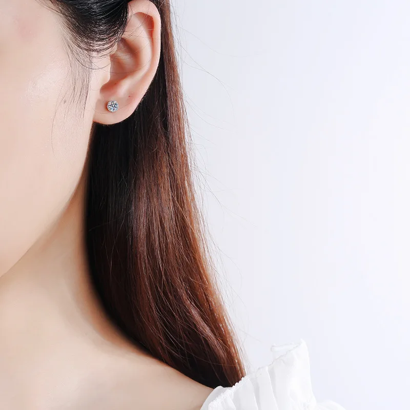 Информация о продуктеМатериал: 925 пробы серебро + Гра моиссанитОсновной камень: Moissanite Diamond 0.5ct/1ct/2ctЦвет: D ЦветКласс четкости: VVS1Милый класс: отличный0,3 карат Размеры: 4 ммВсего Карат: 0.6ct/параСертификация Gra включает: Да