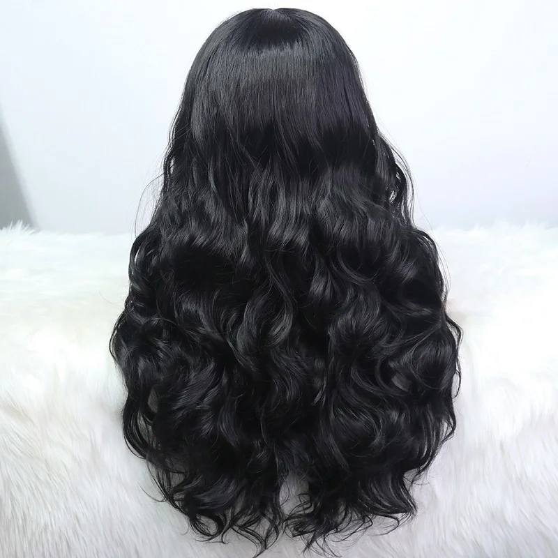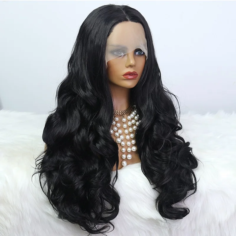 Черный, плотность 180%, 26 дюймов, длинный волнистый синтетический кружевной передний парик для черных женщин, детский Волос, предварительно выщипанный, для повседневного Косплея