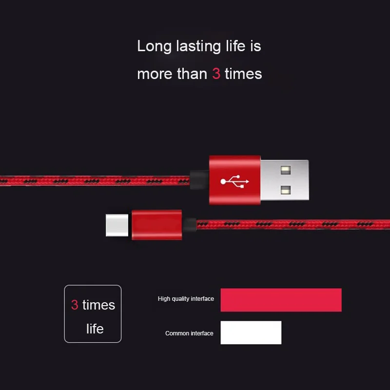 Кабель USB Type-C для передачи данных и зарядки для Samsung S20, A51, Huawei, Xiaomi Redmi Note 9, быстрая зарядка, длинный провод, шнур USB 2 м, 3 м