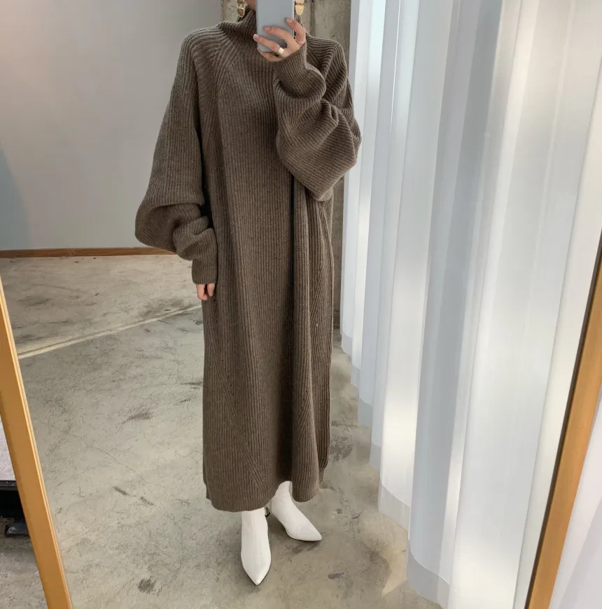 Новое кашемировое длинное платье, женское трикотажное платье с рука...