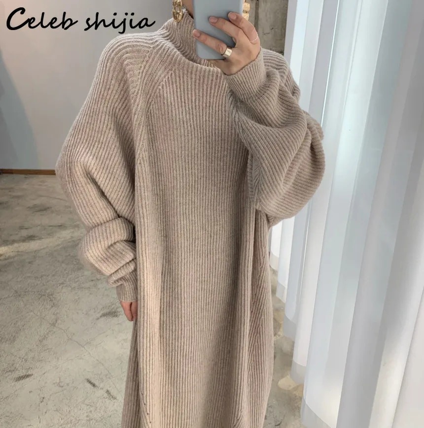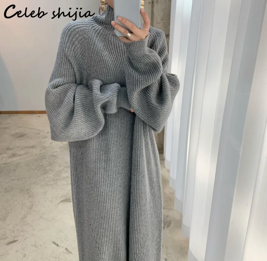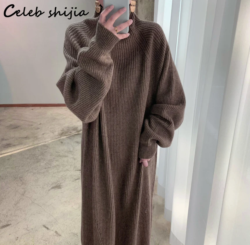 Женское вязаное платье-свитер SHIJIA, элегантное винтажное свободно...