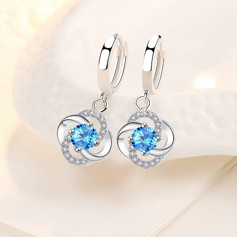 Серьги женские из серебра 925 пробы, с голубыми кристаллами и цирконами