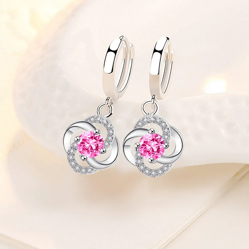 Женские серьги из серебра 925 пробы с голубым и розовым кристаллом