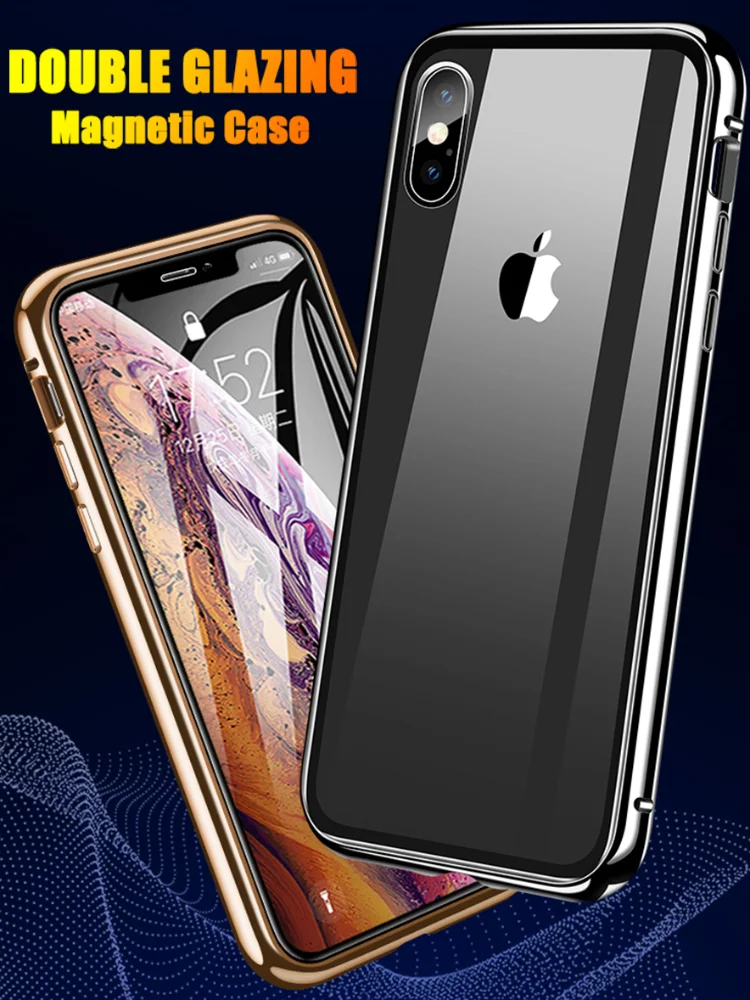 Магнитный чехол с двойным стеклом для iPhone 8 7 6 Plus SE X XR XS ...