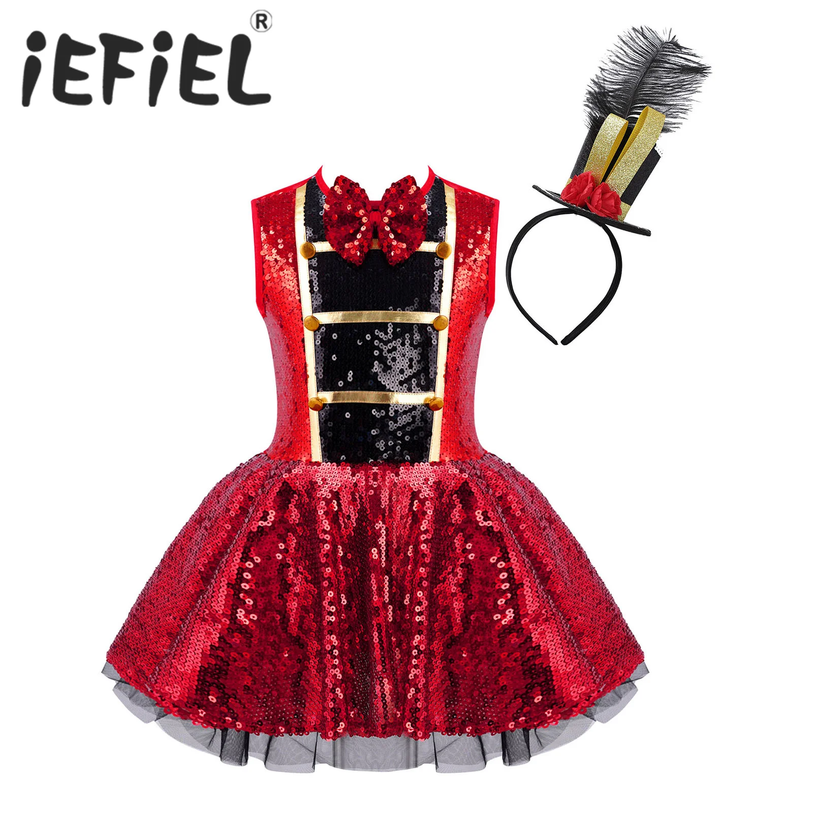 Женский трико с блестящими блестками и шляпой в виде перьев