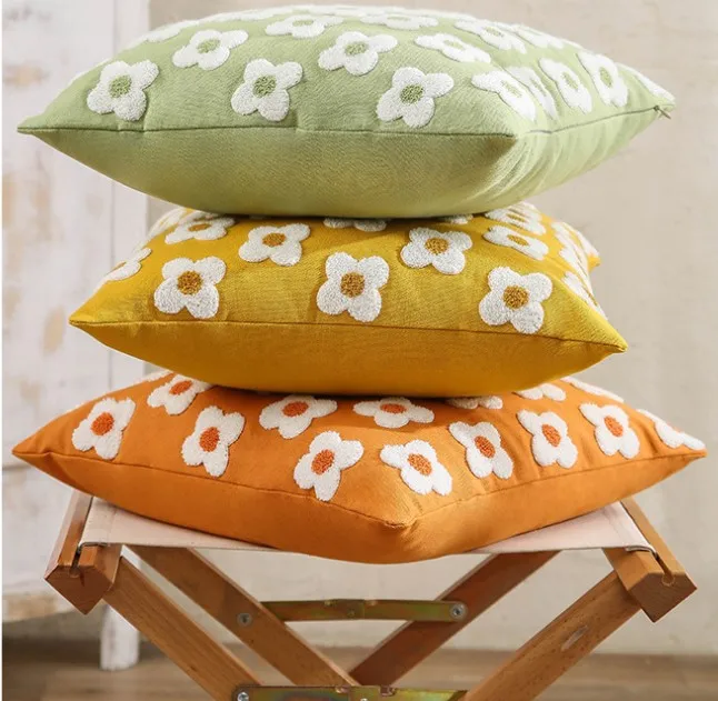Фиолетовая Желтая подушка с цветочной вышивкой, чехол, украшение для дома, зеленая искусственная Подушка, 30 Х5, 0 см45 х45 см, чехол для диванной подушки