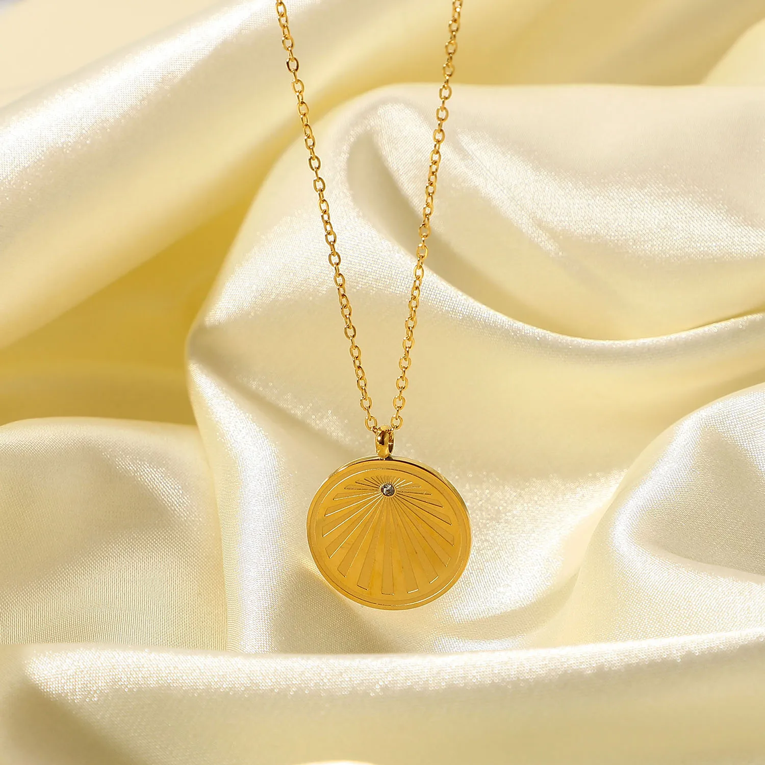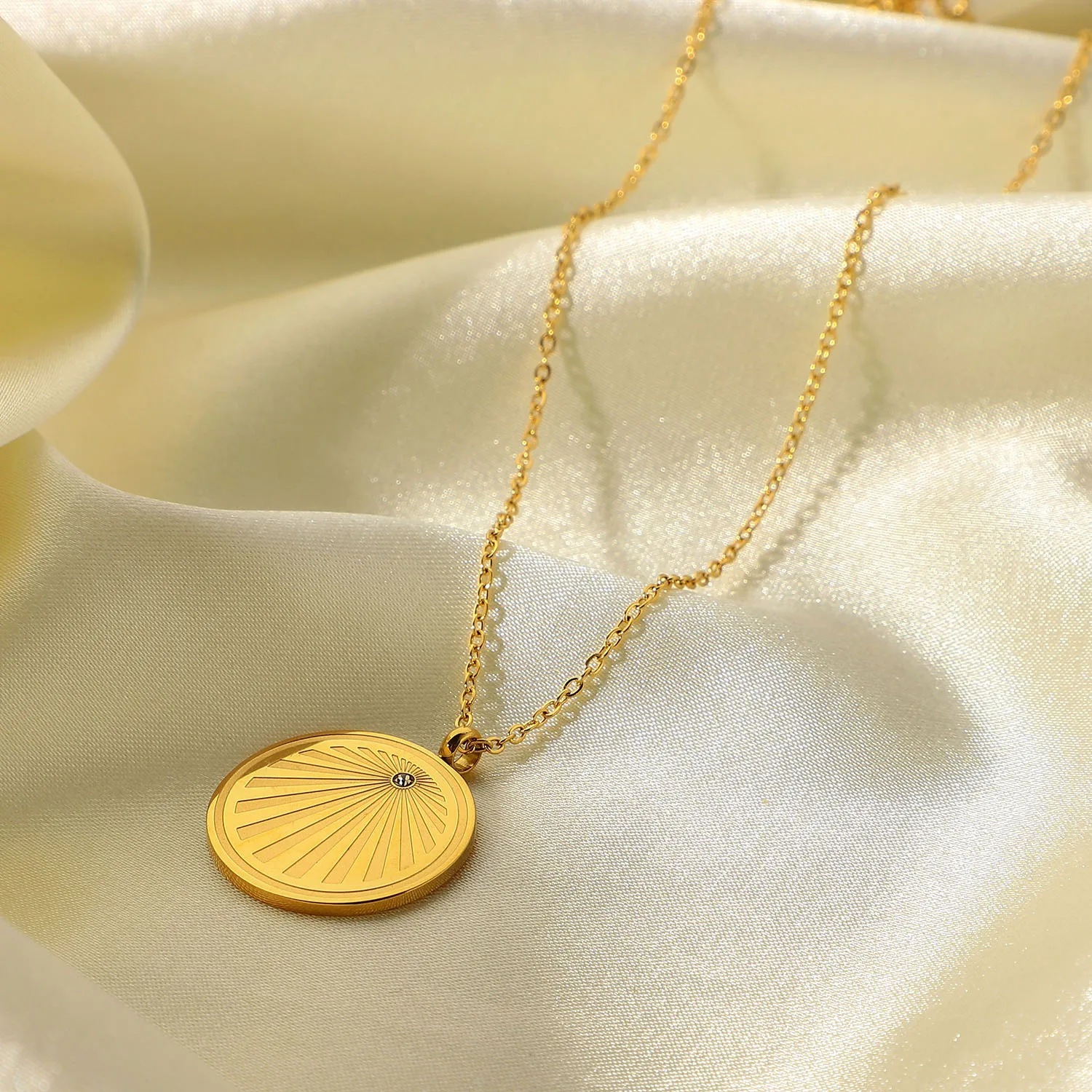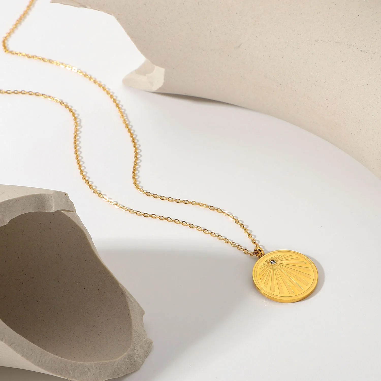 Круглое ожерелье с подвеской в виде диска из 18-каратного золота с фианитом и изящным искусственным камнем, модные ювелирные украшения из нержавеющей стали