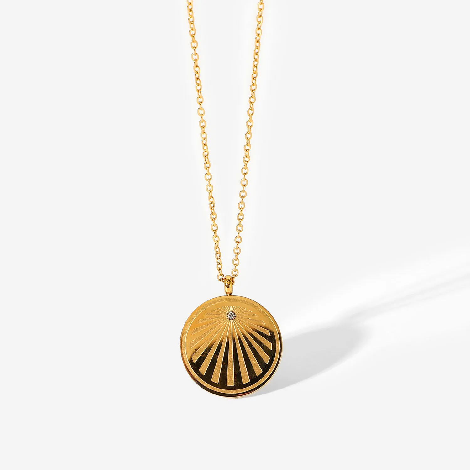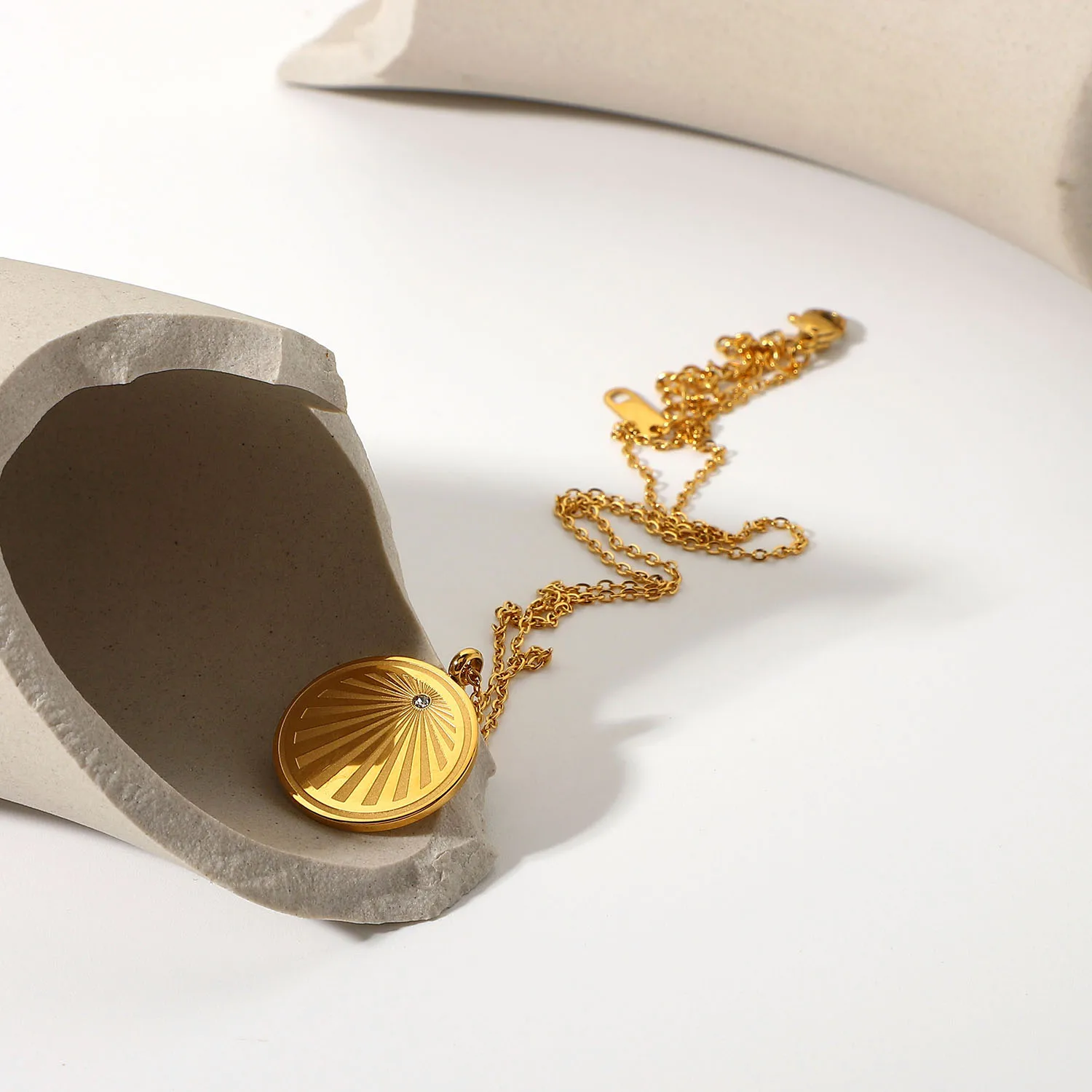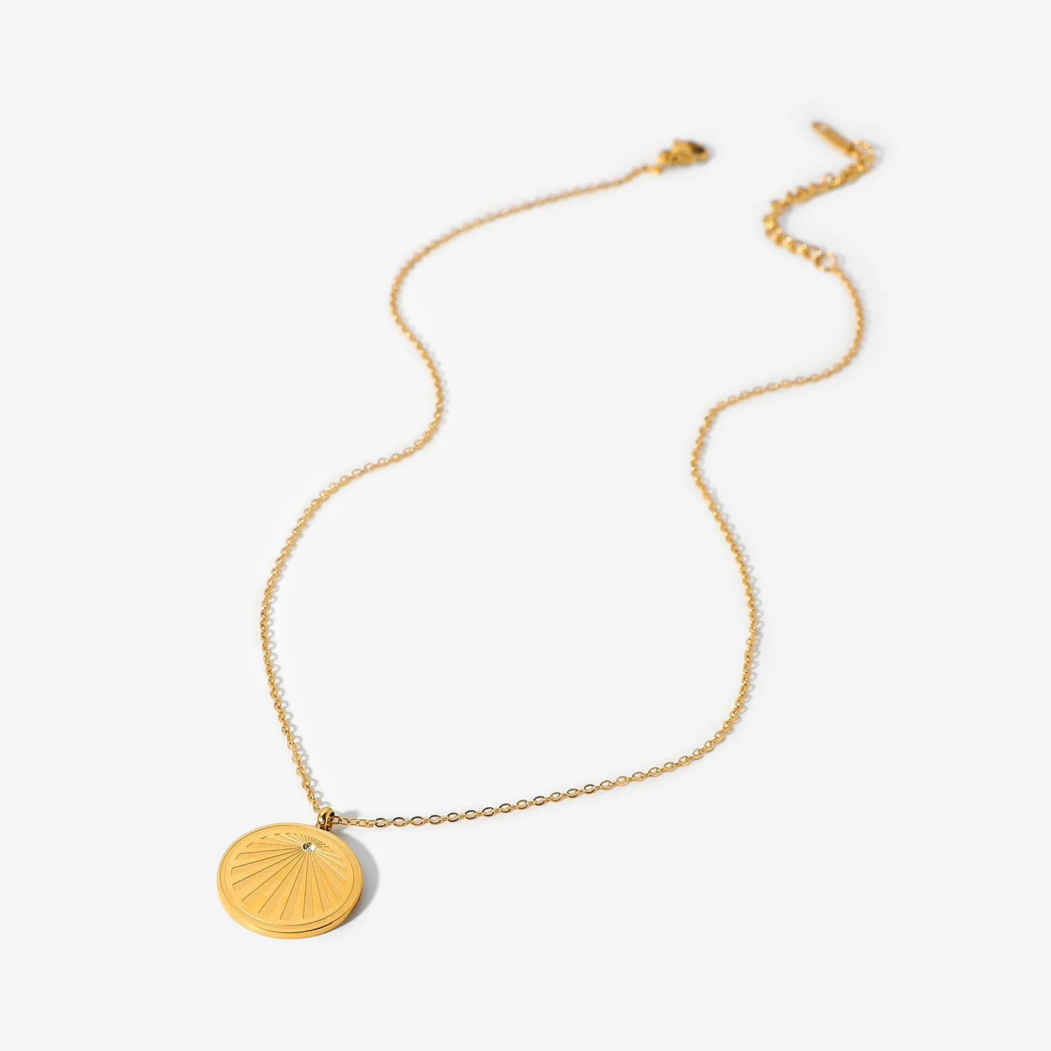 Круглое ожерелье с подвеской в виде диска из 18-каратного золота с фианитом и изящным искусственным камнем, модные ювелирные украшения из нержавеющей стали