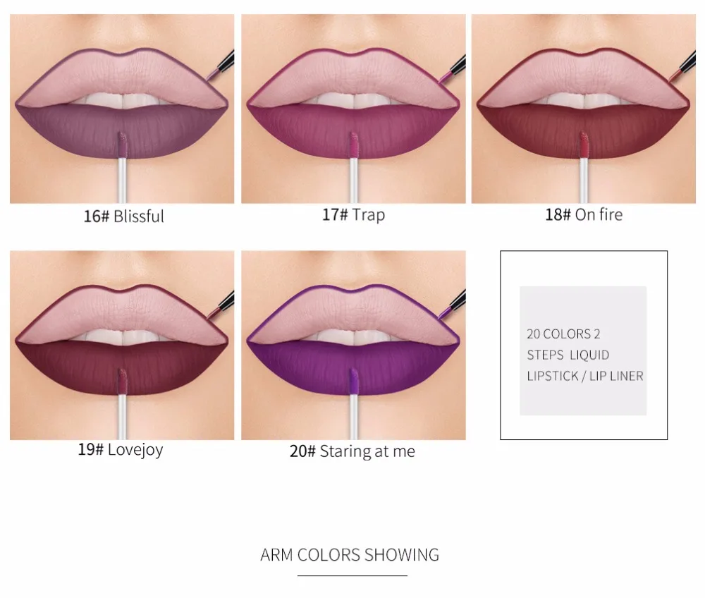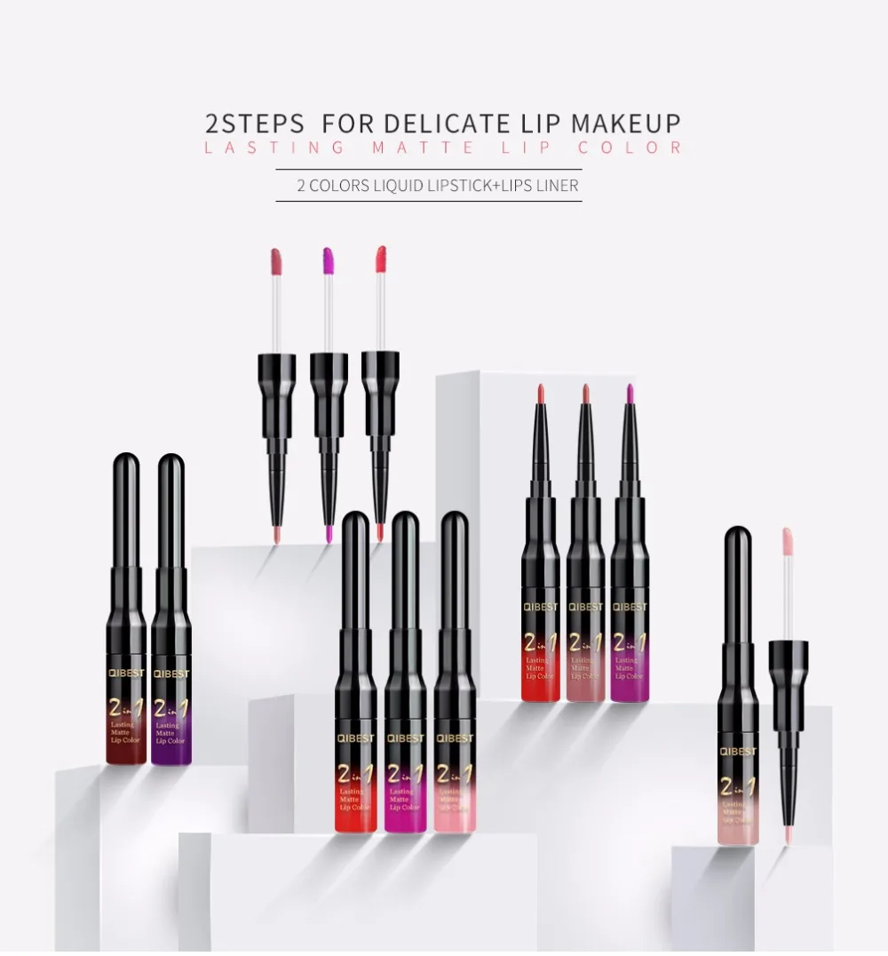 Двойной матовый блеск для губ Qibest ТИНТ, подводка, водостойкий ню...