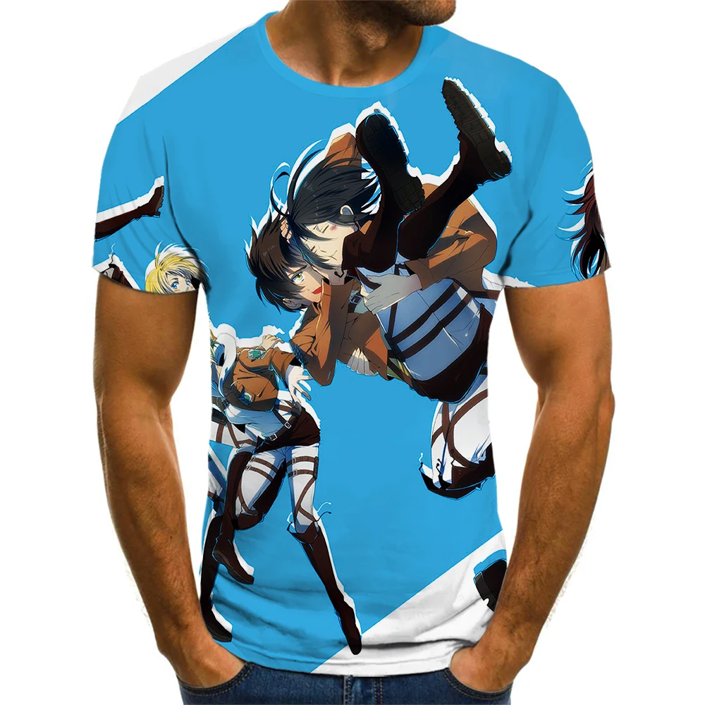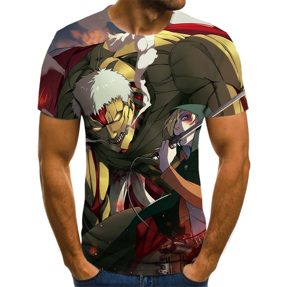Мужская футболка с коротким рукавом, Повседневная футболка с 3D-принтом японской анимации атаки на титанов, 2021