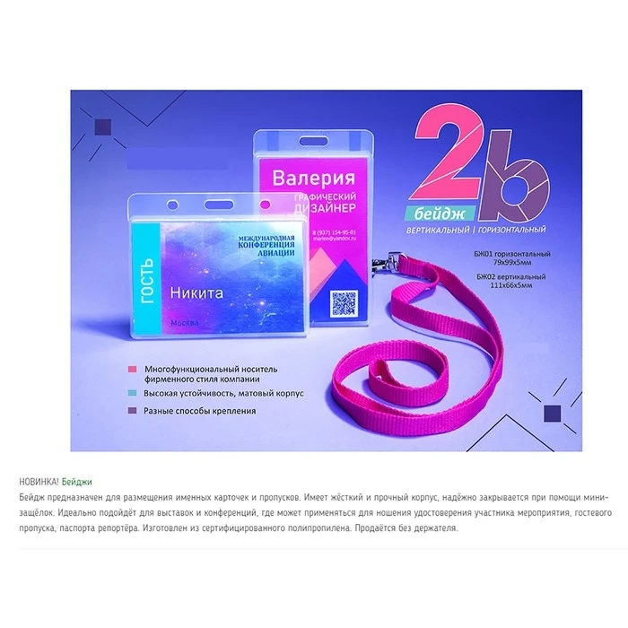 Бейдж вертикальный 66 х 111 х 5 мм, "Стамм", жёсткий пластик