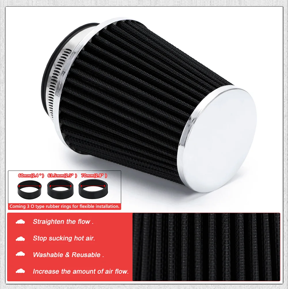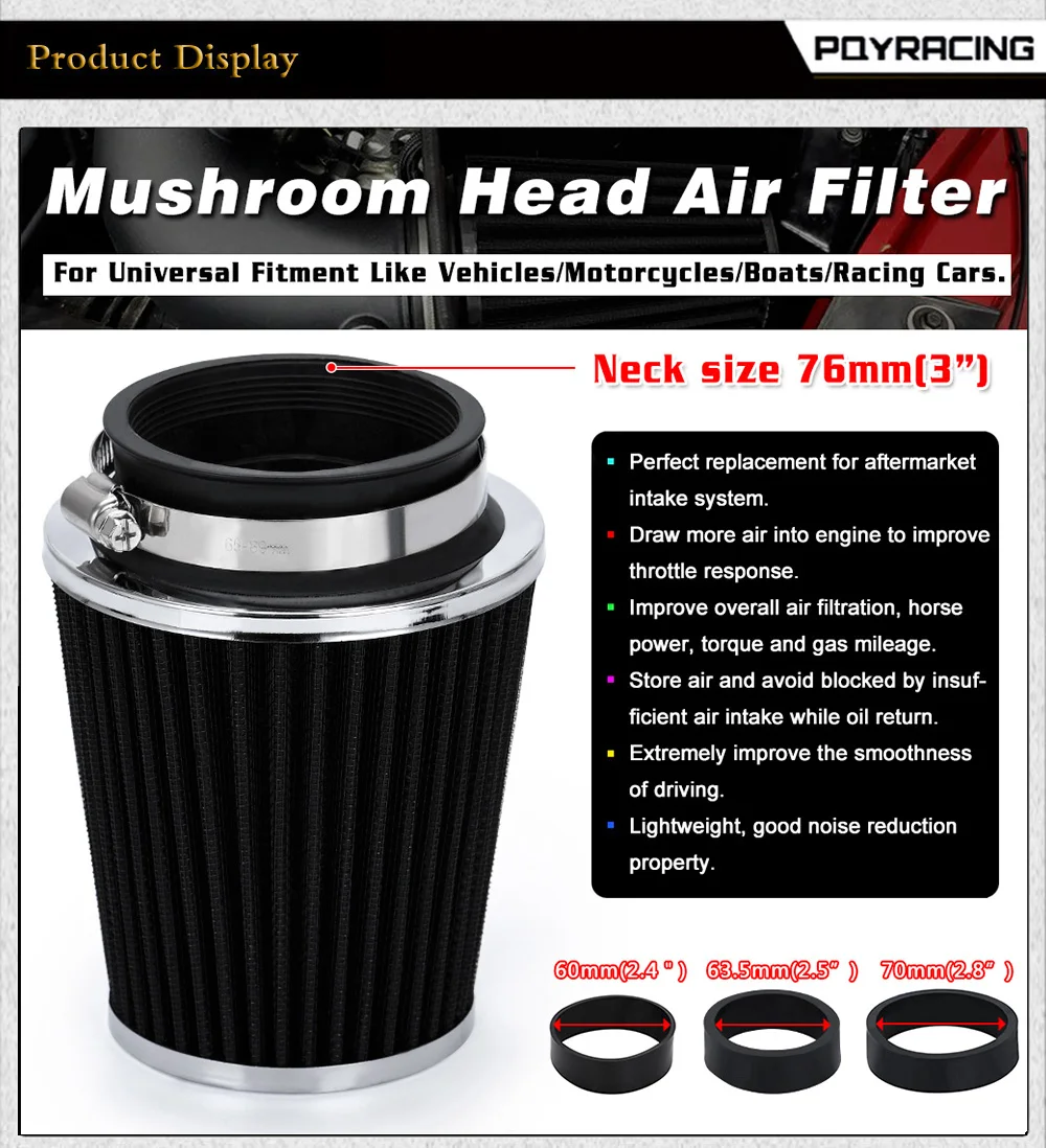 Универсальная автомобильная система воздухозаборника с высоким потоком холодного воздуха, воздухозаборник с грибовидной головкой, воздушный фильтр 76 мм70 мм63,5 мм60 мм