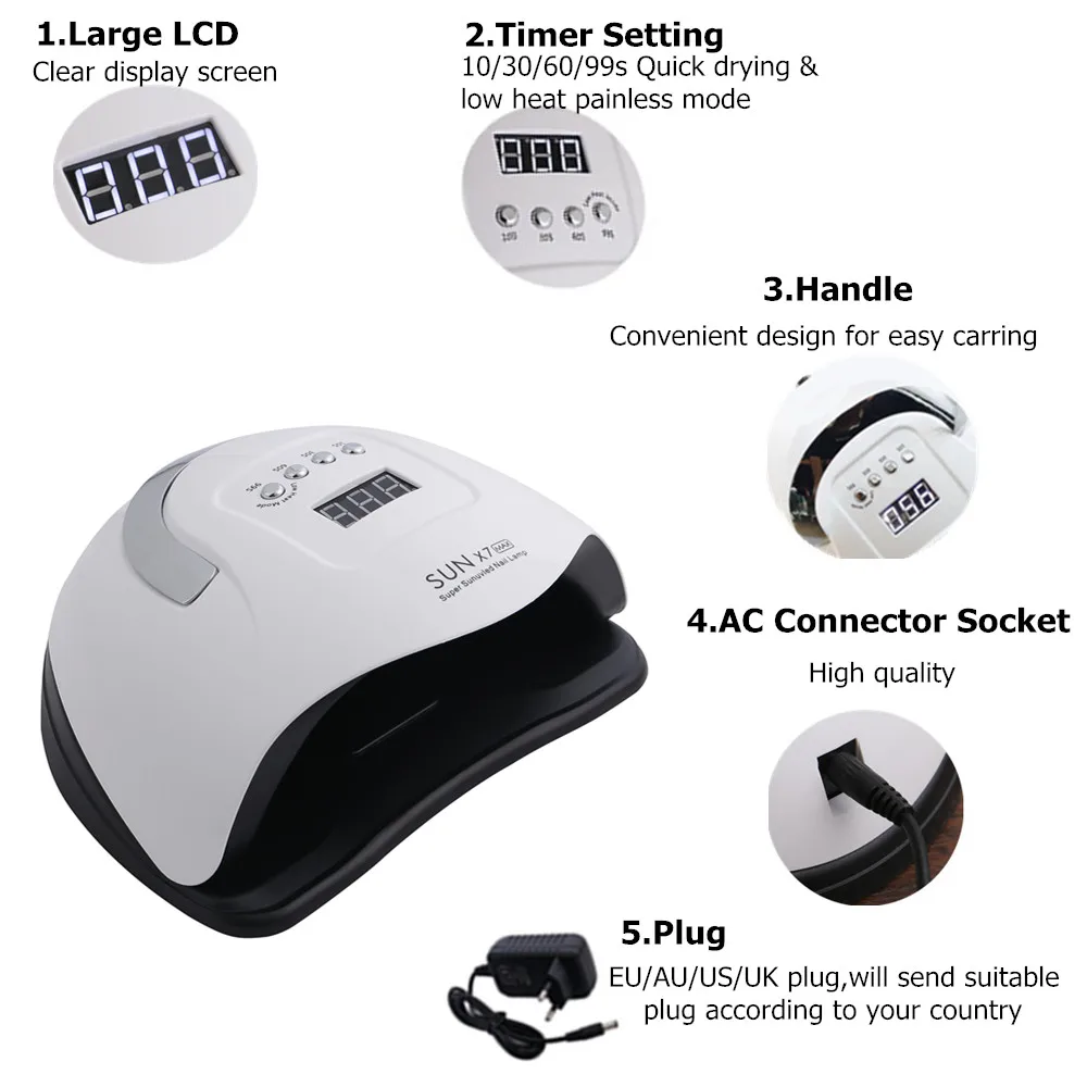 УФ-лампа SUN X7 MAX для сушки гель-лака, 114 Вт, 57 бусин