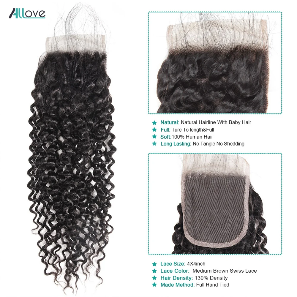 Кудряпряди Allove с застежкой, бразильские пучки волос, пучки с застежкой, кудрявые человеческие волосы, пучки с фронтальной не Реми