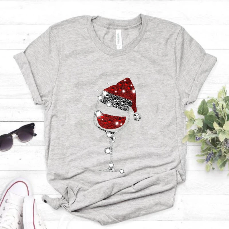 Женские милые футболки, Рождественская винная Милая Летняя женская рубашка с коротким рукавом и принтом, футболки, одежда, топы, Милая футболка