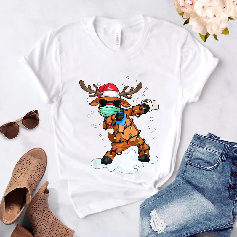 Летняя футболка в стиле Харадзюку, одежда с оленями, рождественские базовые футболки, женские повседневные футболки в Корейском стиле