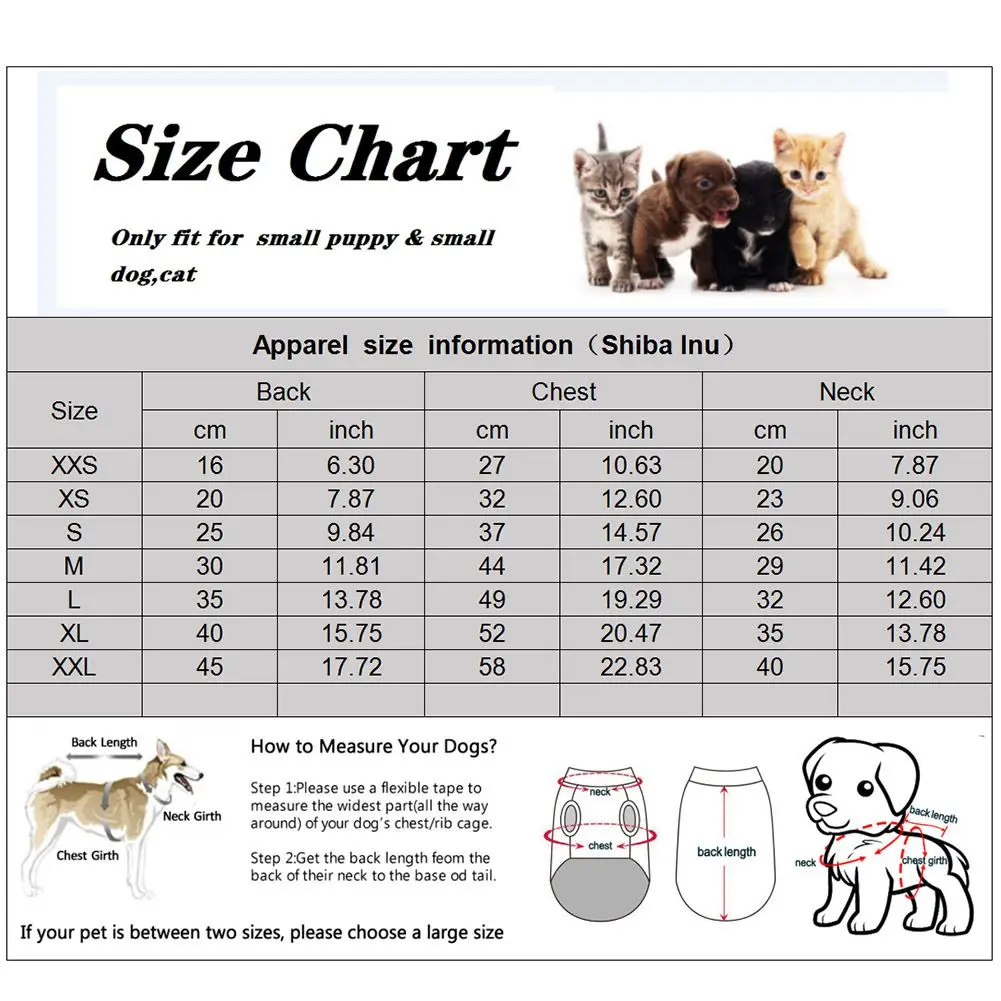 Материал: флоатРазмер; Длина; Обхват груди; Шеи; ПожеланияXXS 16 см/6,3 "27 см/10,63" 20 см/7,87"XS 20 см/7,87 "32 см/12,6" 23 см/9,06"S 25 см/9,84 дюйма 37 см/14,57 дюйма 26 см/10,24 дюймаM 30 см/11,81 "44 см/17,32" 29 см/11,42"L 35 см/13,78 "49 см/19,29" 32 см/12,6"XL 40 см/15,75 дюйма 52 см/20,47 дюйма 35 см/13,78 дюймаXXL 45 см/17,72 дюйма 58 см/22,83 дюйма 40 см/15,75 дюймаОсобенности продукта1, флисовая ткань удобная, стерео крой под заказ2. Вырез, манжета, эластичный материал, легко носить3, Метод упаковки заключается в том, чтобы предотвратить заусенцы и не легко пилить, так что его части являются естественными4. Свитер с узором, платье, модный вариант для путешествий на ХэллоуинПосылка включает:1x Одежда для домашних животныхПримечания1. Пожалуйста, учитывайте разницу в 1-3 см из-за ручного измерения и 3-5 г из-за разницы между разными цветами.2. Из-за разницы в цвете экрана цвет может немного отличаться от того, что вы ожидаете, пожалуйста, учитывайте это.3. 1,00 см = 0,39"