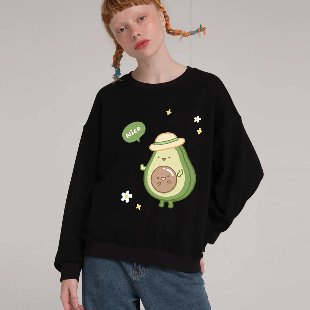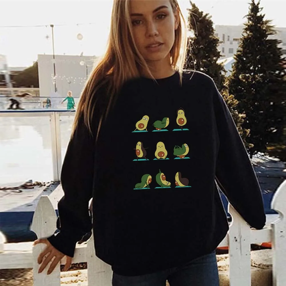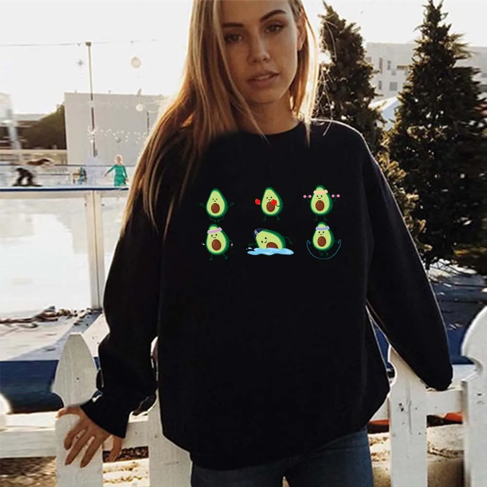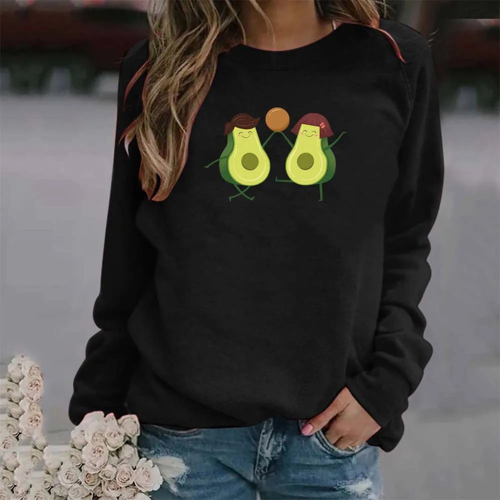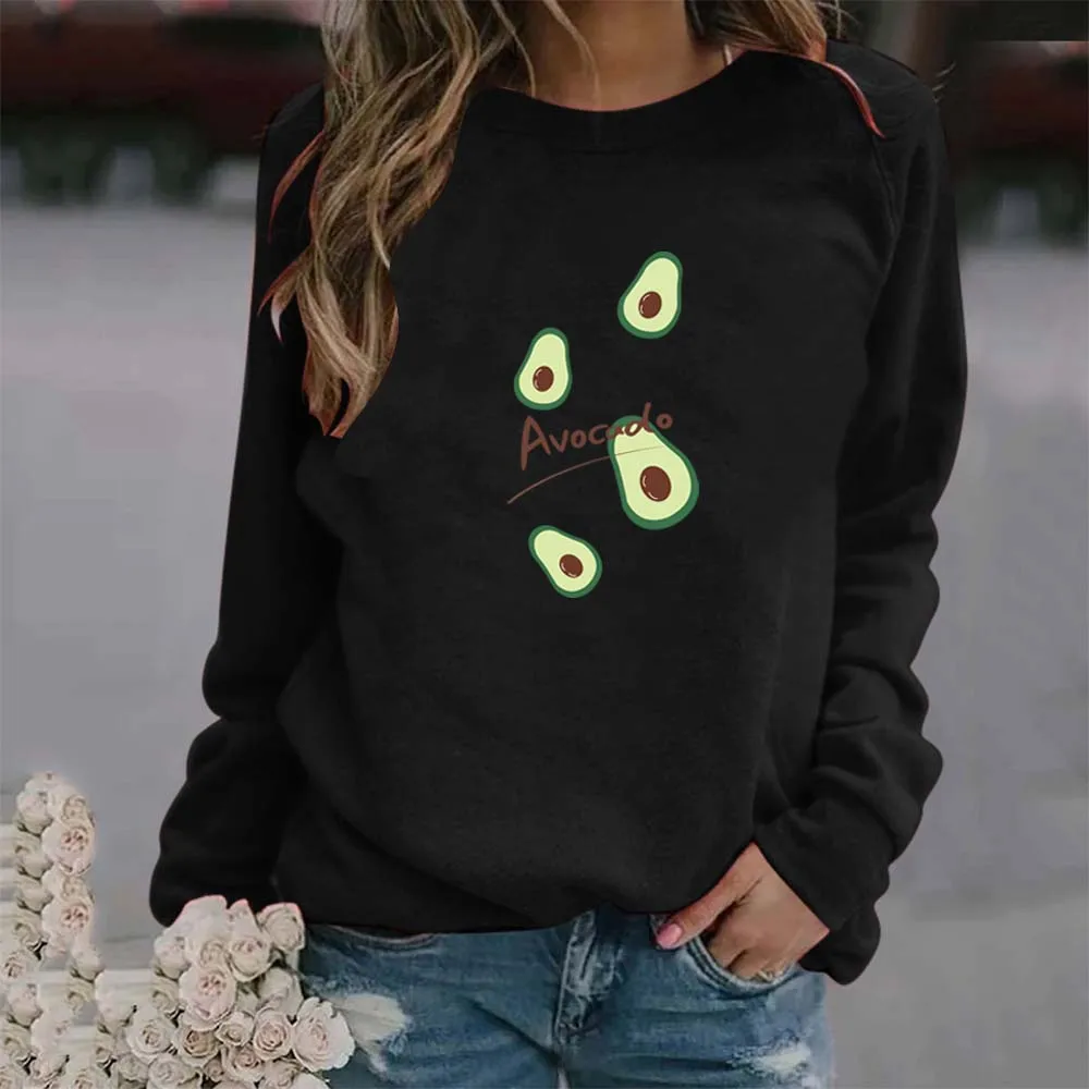 Женский модный пуловер с длинным рукавом, свитшот с круглым вырезом и принтом авокадо, тонкие женские толстовки в стиле Харадзюку, Толстовка на весну и осень
