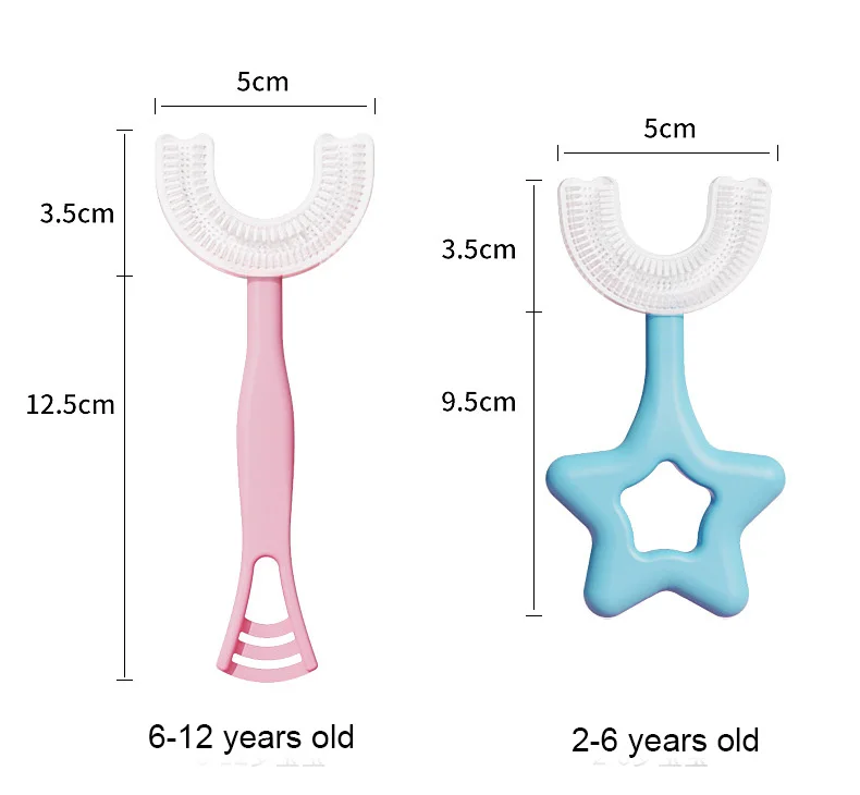 Зубная щетка U-образная силиконовая для детей 2-12 лет, 360