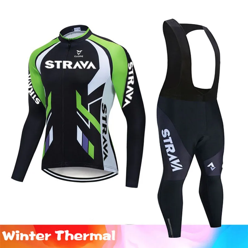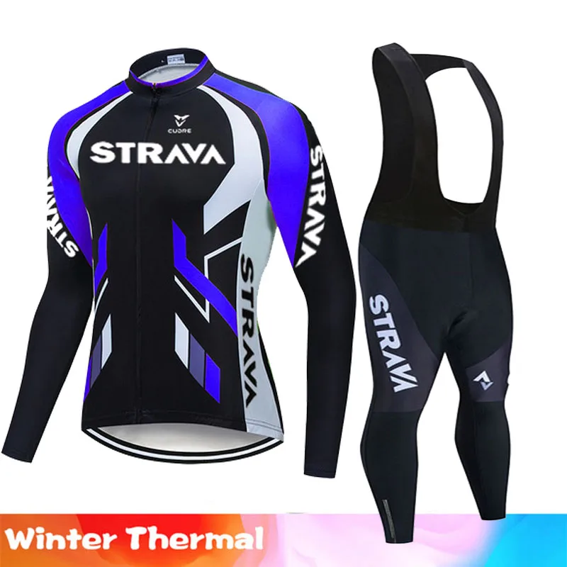 Strava 2021 зимний флисовый велосипедный комплект из Джерси горный велосипед одежда Ropa Ciclismo гоночный велосипедный комплект велосипедной одежды