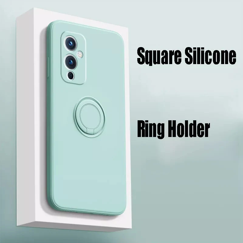 Квадратный жидкий силиконовый чехол для Oneplus Nord 2 5G CE N200 подставка с магнитным кольцом, чехол с держателем для Oneplus 9 Pro 9R 1 + 9 1 + Nord