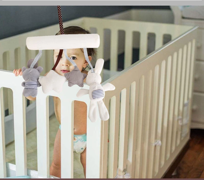 Аксессуары для детской коляски, плюшевая подвеска у кровати с кроликом, удобная детская коляска с животным принтом для новорожденных, игрушки, подвесной колокольчик