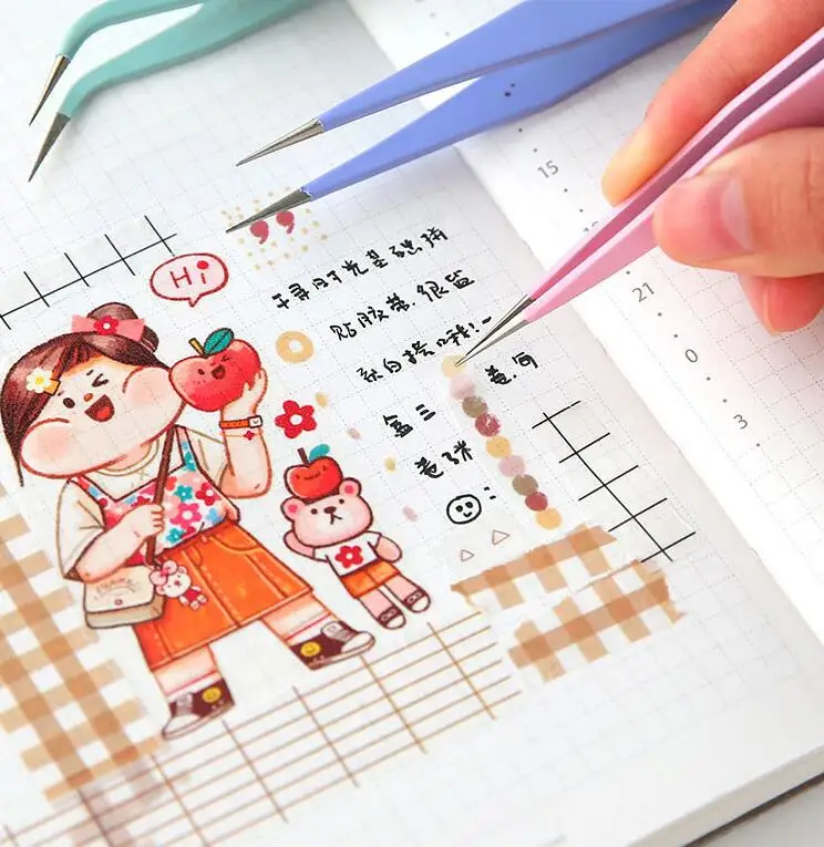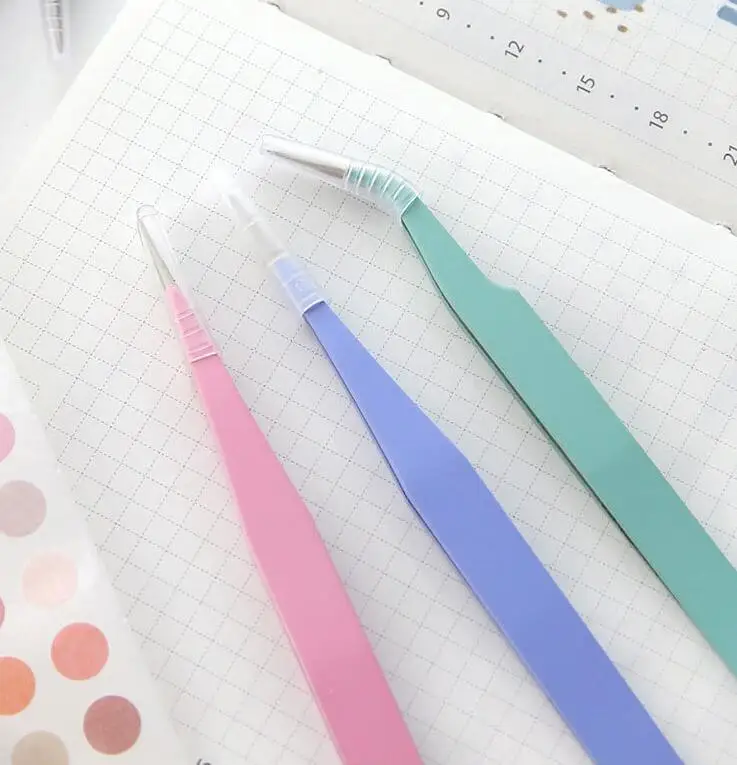 Benefits of using scrapbook tweezers1. Avoid paper wrinkles 2. Feel comfortable when using 3. Prevent staining stickers 4. The elbow is more convenient to remove the sticker 5. The plastic cover protects the sharp points to avoid hurting hands