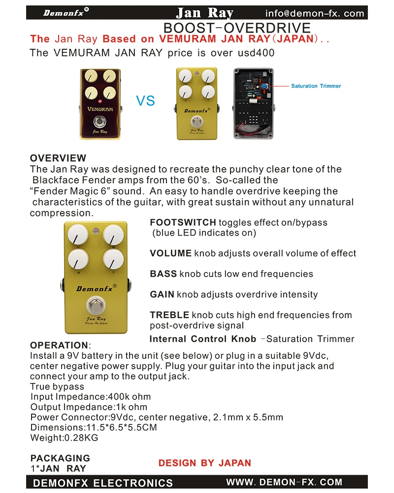 Быстрая доставка и отличное звучание. Нагрузки на выходе в этом! Еще не пробовал настоящий Янь Рей, но это хороший овердрайв по-своему.