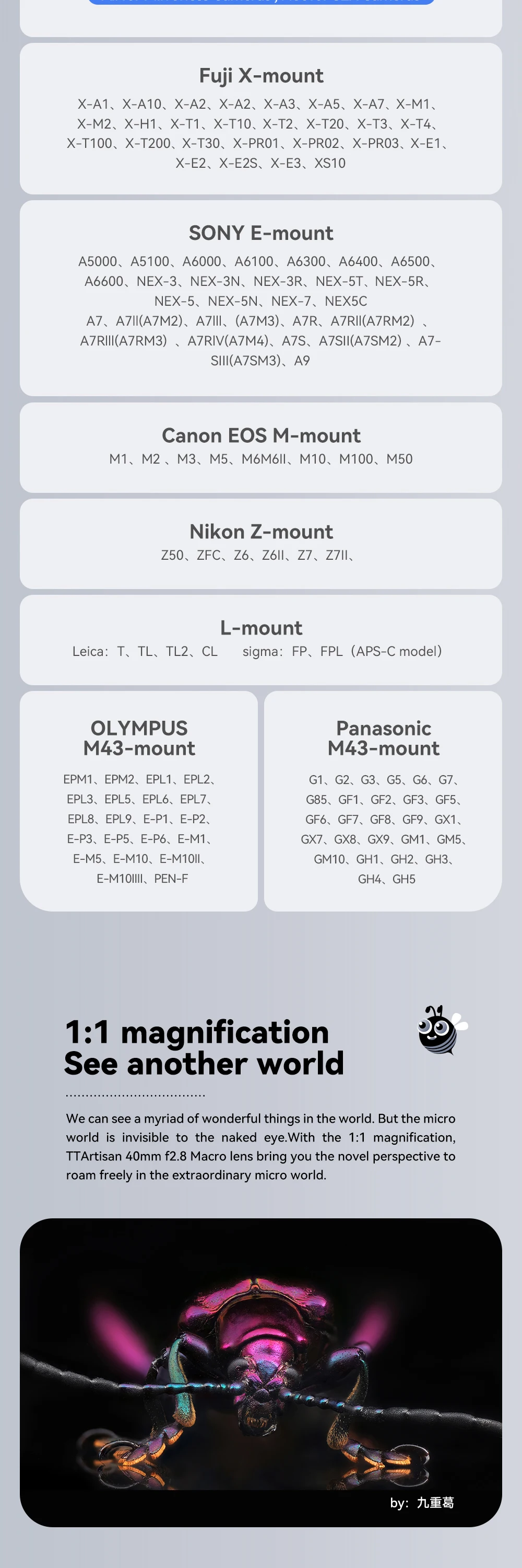 Макрообъектив TTArtisans 40 мм F2.8 APS-C для Panasonic Fuji SonyNi...