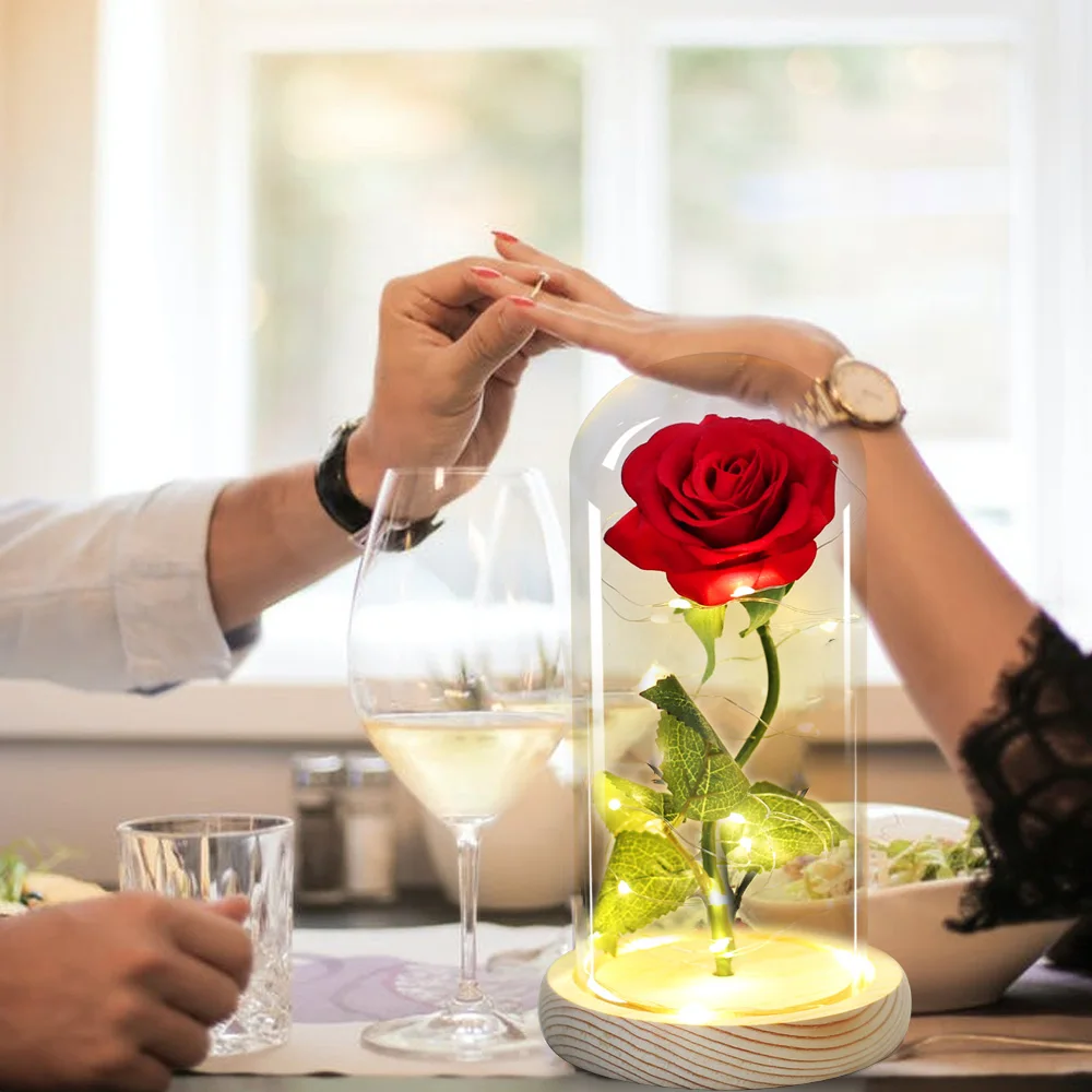 1. Сохраненный цветок розы изготовлен из превосходного материала розы, высококлассного цветка и превосходного прозрачного стекла, и сделан искусным техником.