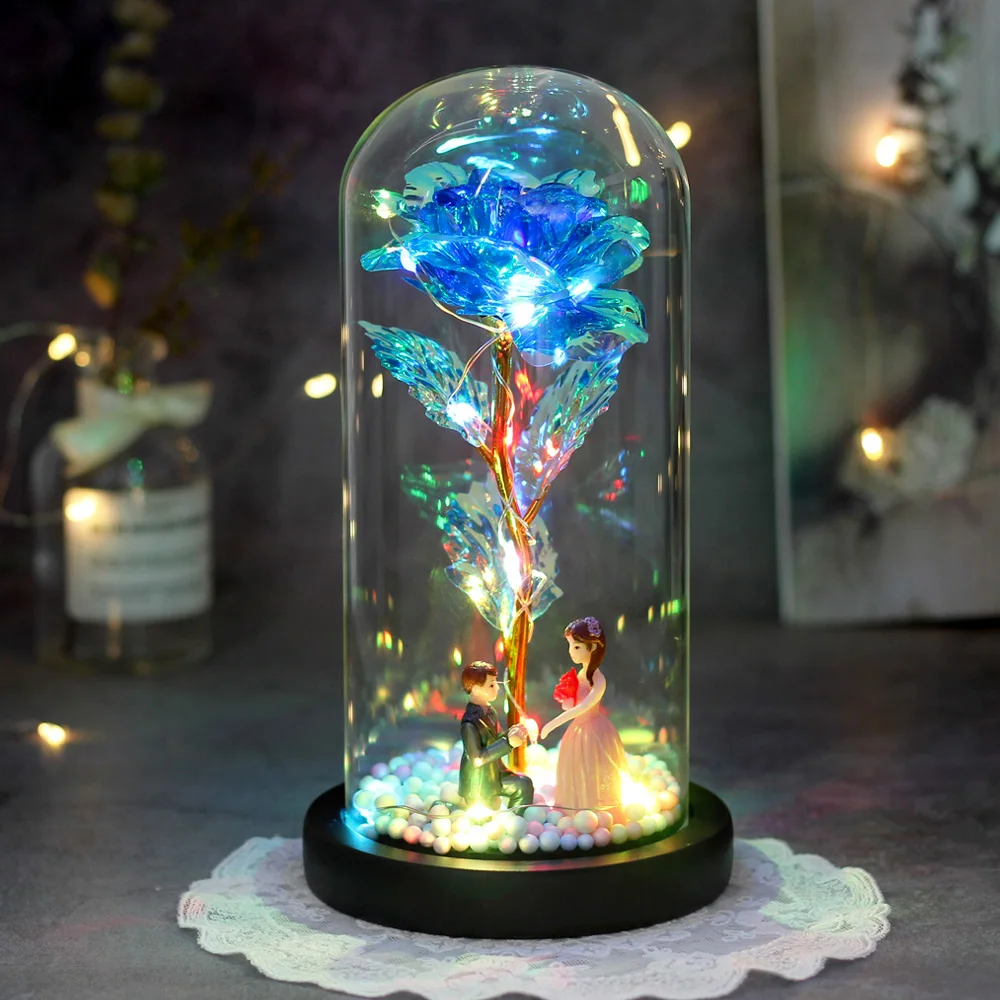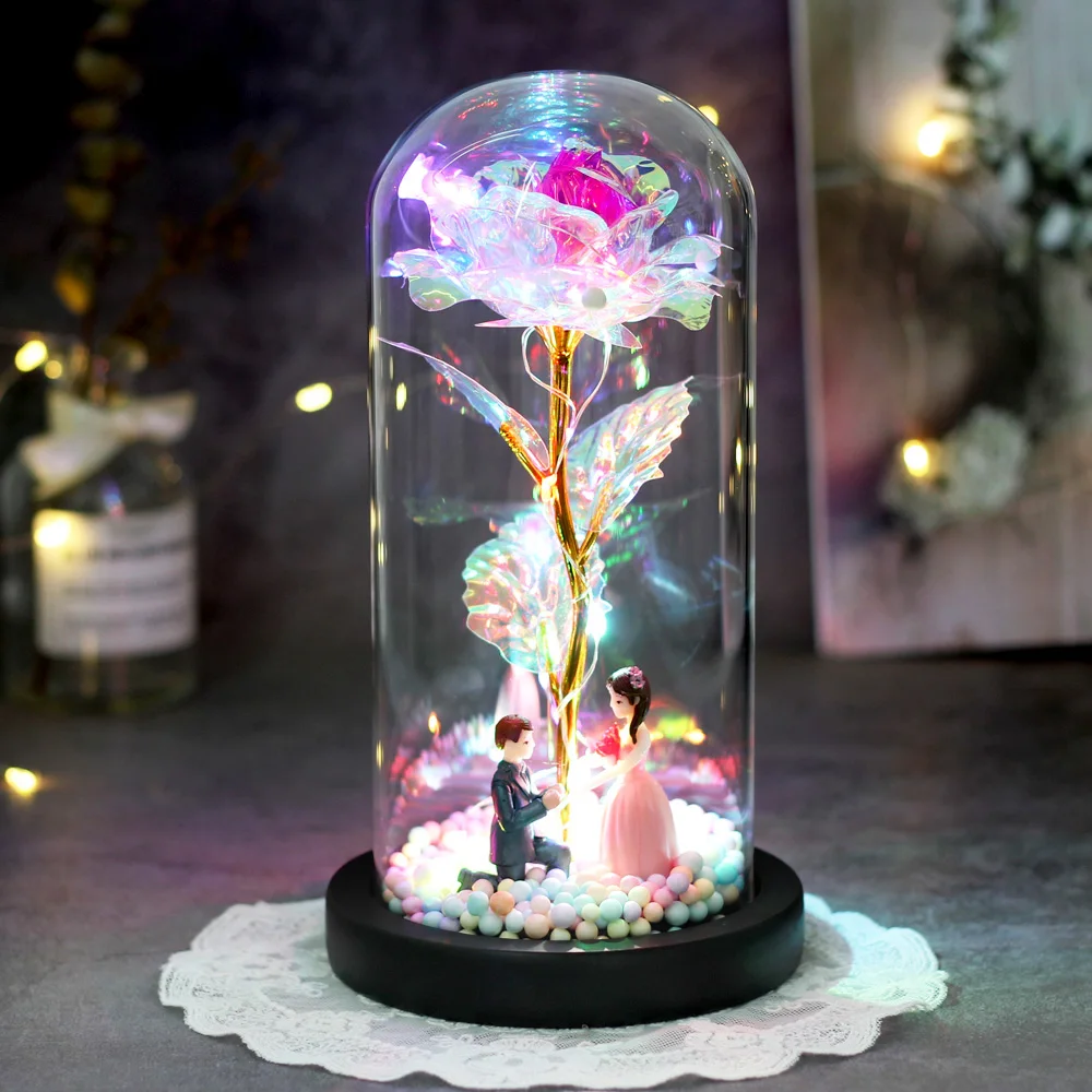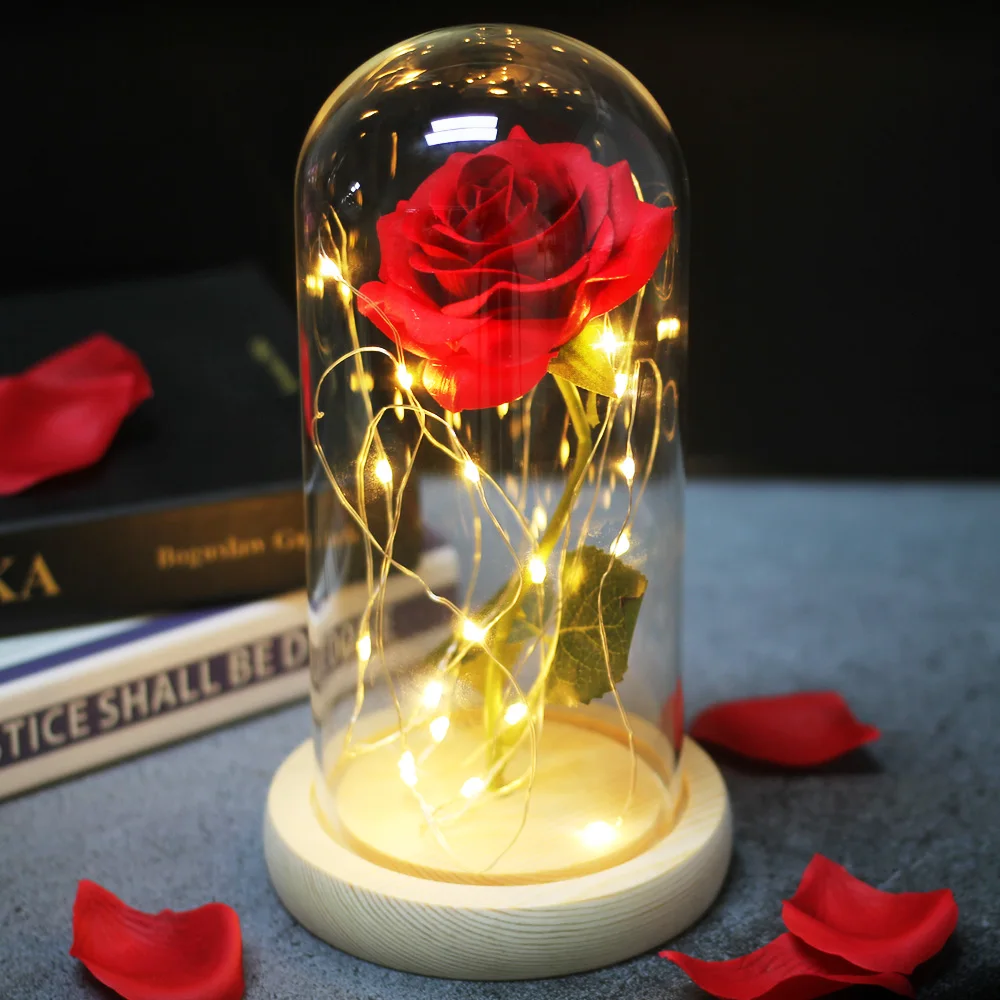 Вечная роза, светильник, красивая роза и розовый зверь на хрустальном куполе для подарка матери на День святого Валентина или Рождество