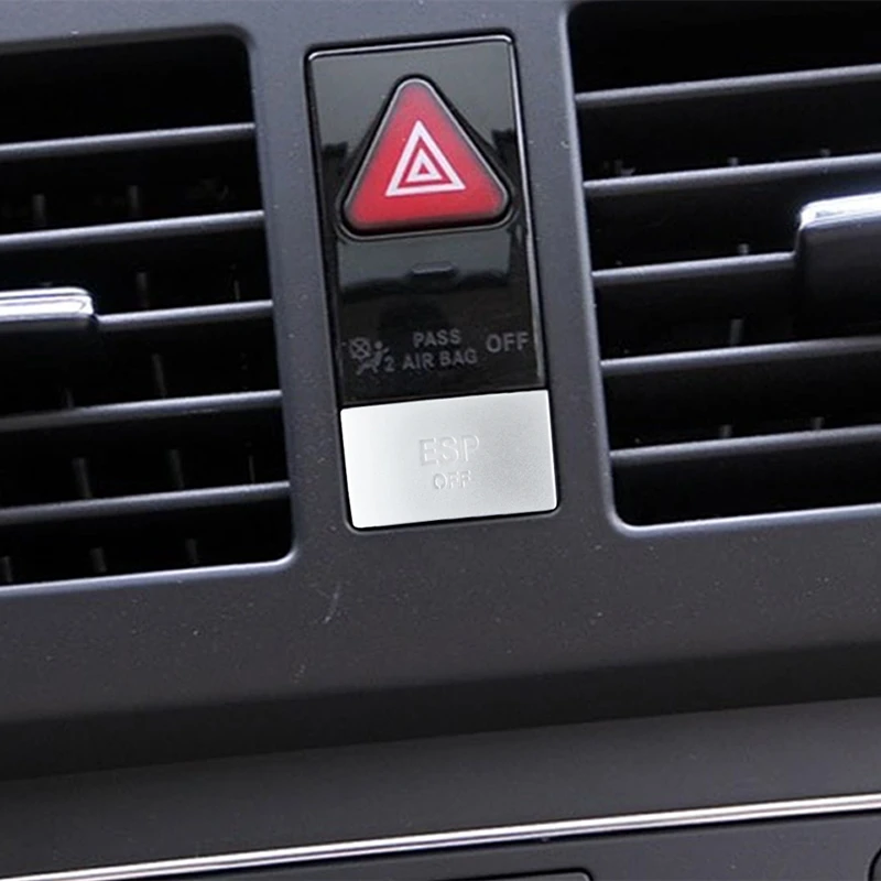 Автомобильный Стайлинг центральная консоль ESP кнопка выключения наклейка украшение покрытие наклейка отделка для Mercedes Benz X204 W204 GLK C Класс интерьера 100% новый продукт Посылка включает в себя: 1 шт. Цвет: серебристый Материал: АБС-пластик Костюм для Mercedes Benz GLK X204 2008-2015