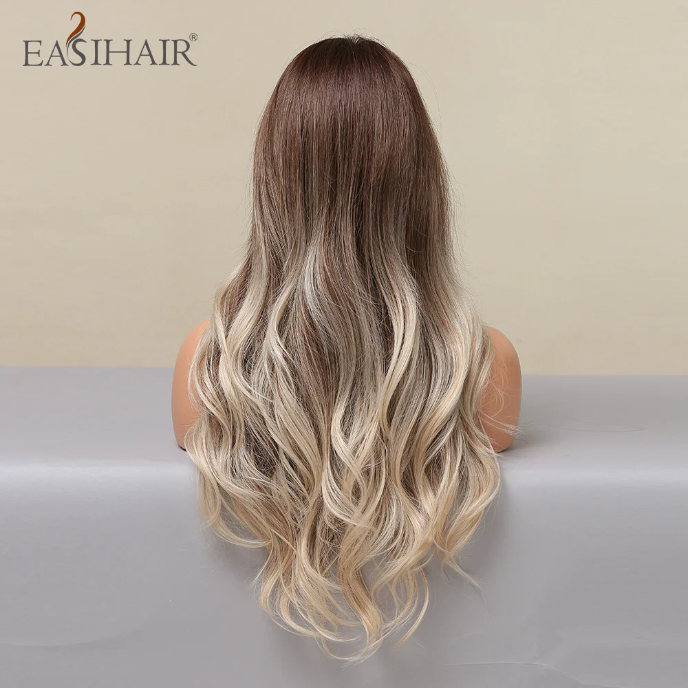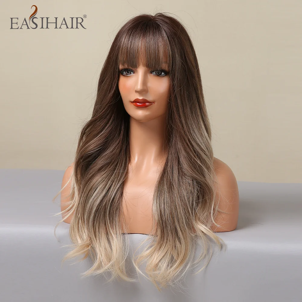 EASIHAIR Длинные Синтетические волнистые парики с челкой Омбре коричневый пепельный глонд термостойкие натуральные волосы для женщин Повседневные Вечерние Косплей