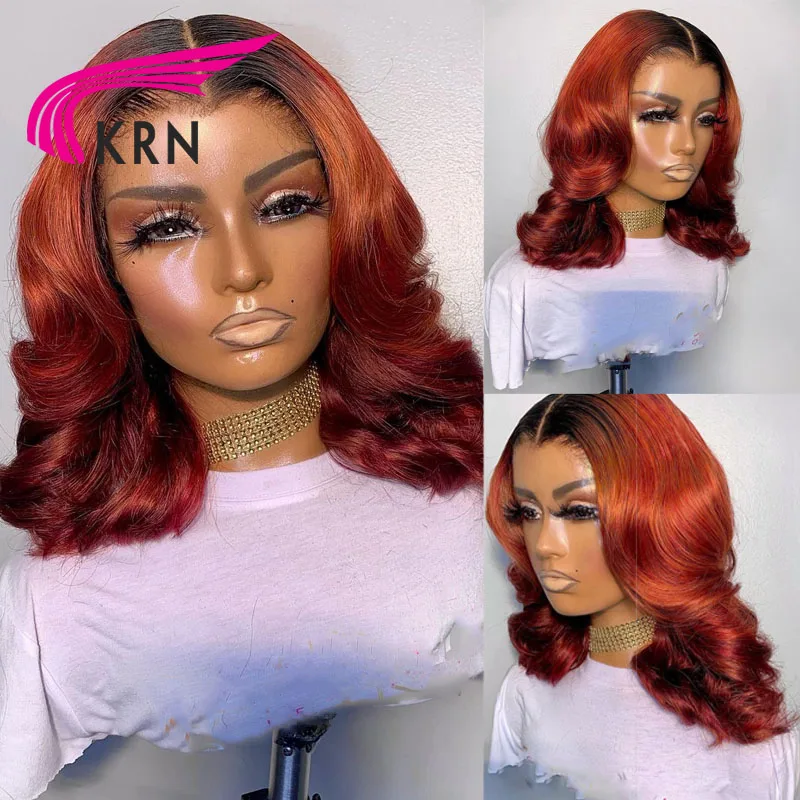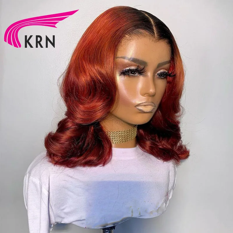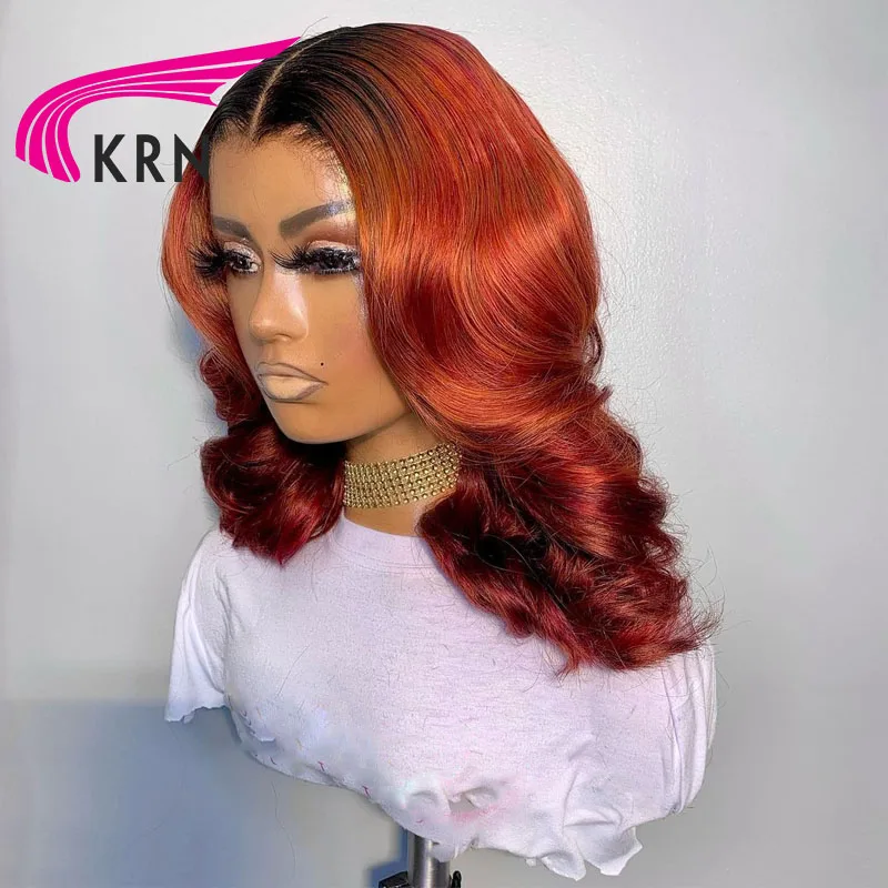 Оранжевый 1B имбирь Цвет 13x1 кружева передние человеческие волосы парики для женщин 180% плотность Реми человеческие бразильские волосы Remy волнистые синтетические волосы парики
