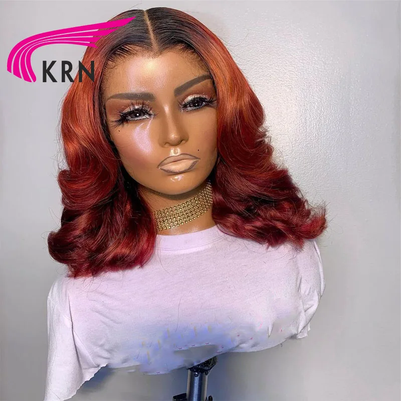 Короткие парики KRN Bob, бордовые 99j прямые человеческие волосы на...