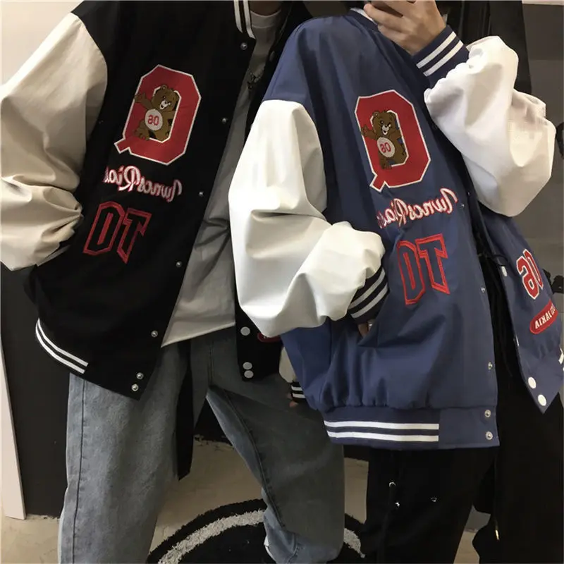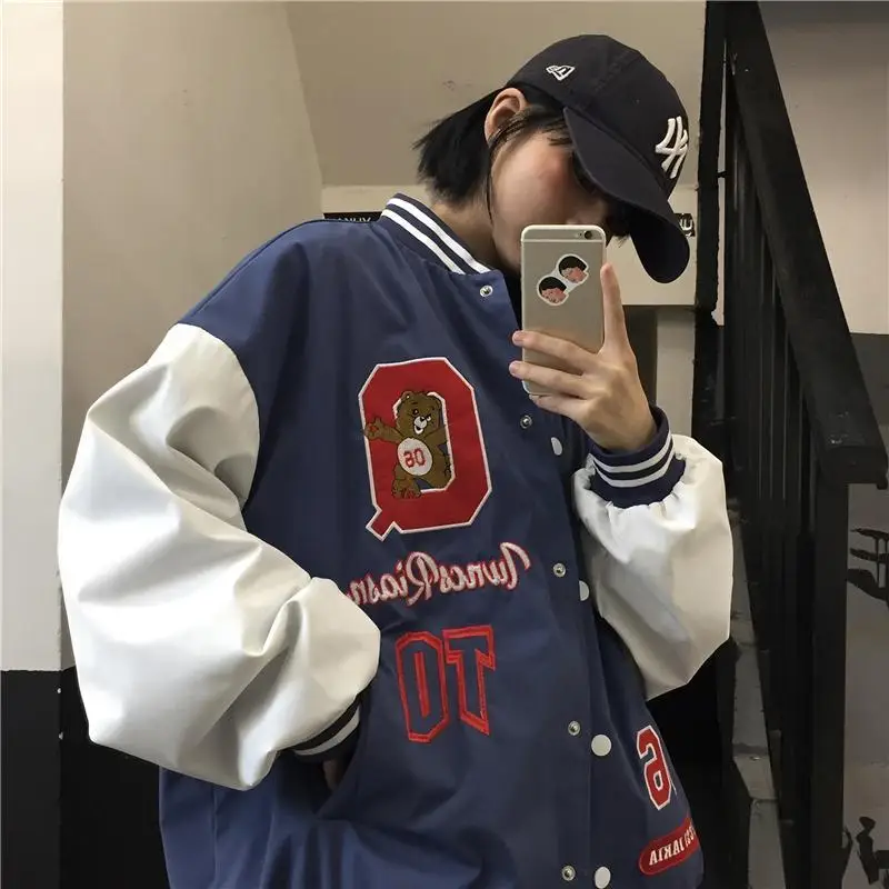 Женская длинная куртка с вышивкой в виде медведя, новинка, y2k, весна-осень, Корейская версия в гонконгском стиле, свободная бейсбольная форма