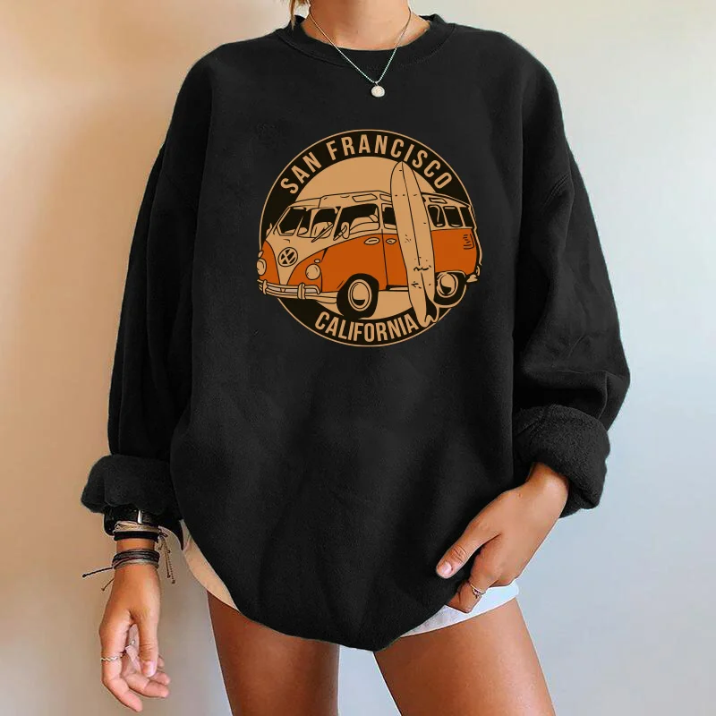 Женские свитшоты с принтом Сан-Франциско Калифорния, винтажные городские Топы большого размера с круглым вырезом, женские пуловеры с открытыми плечами, свитшоты