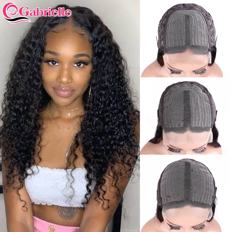 Бразильские вьющиеся человеческие волосы парики 4x1 5x1 6x1 T Часть Кружева Закрытие парик для женщин средняя часть Remy Волосы 150% плотность Gabrielle