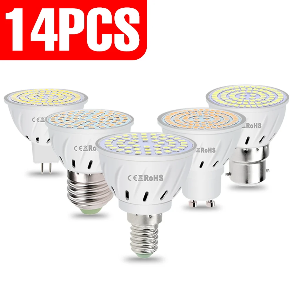 Светодиодная лампа GU10 E27 E14, 14 шт., точесветильник Лампа 48, 60, 80 светодиосветодиодный s, светодиодсветильник лампа MR16, 220 В, B22, Светодиодный лампа-кукуруза GU5.3, точечная лампа